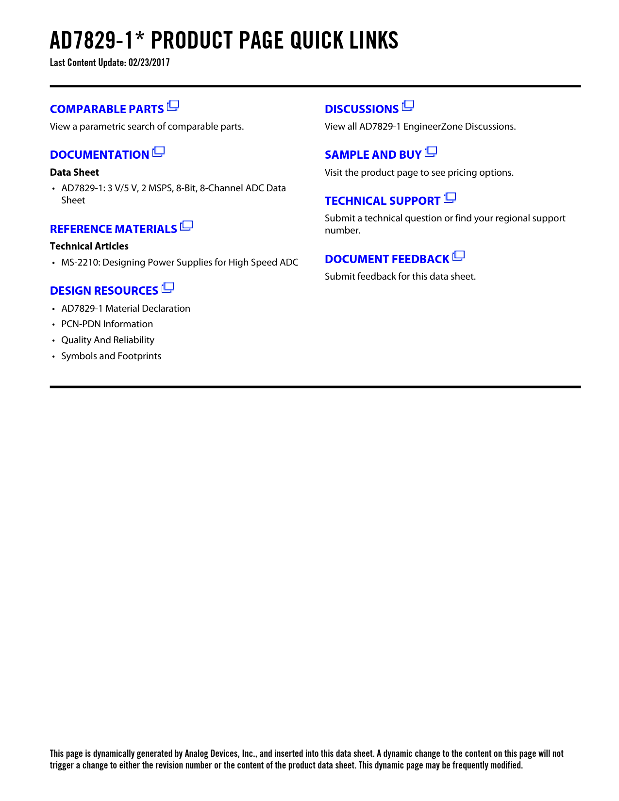 This page is dynamically generated by Analog Devices, Inc., and inserted into this data sheet. A dynamic change to the content on this page will not trigger a change to either the revision number or the content of the product data sheet. This dynamic page may be frequently modified.