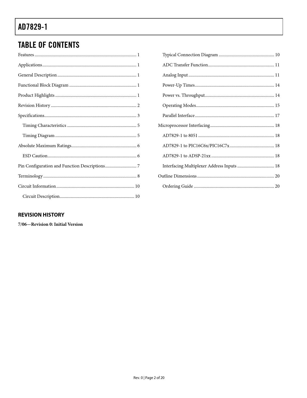 AD7829-1 TABLE OF CONTENTS REVISION HISTORY 7/06—Revision 0: Initial Version