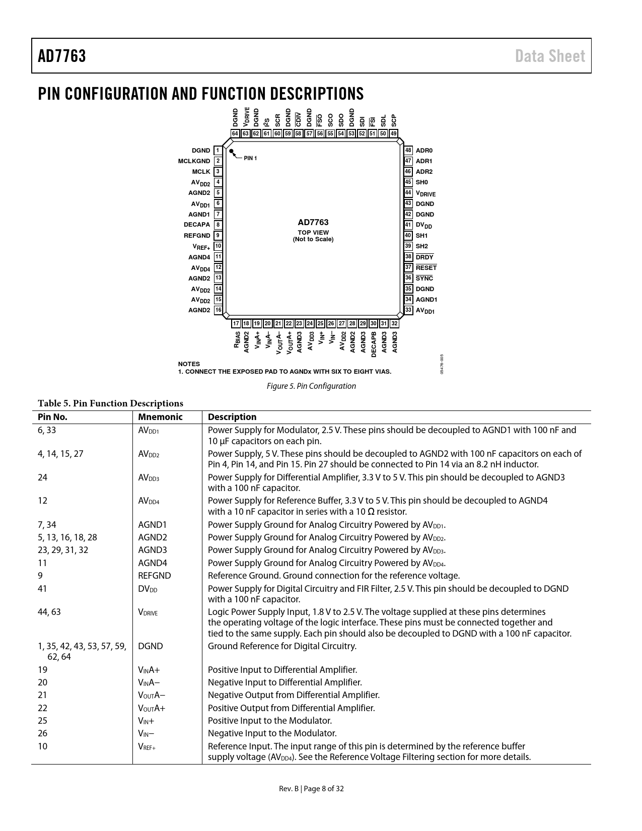 Seiten / Seite33 / 9 — AD7763. Data Sheet. PIN CONFIGURATION AND FUNCTION DESCRIPTIONS. E V. …