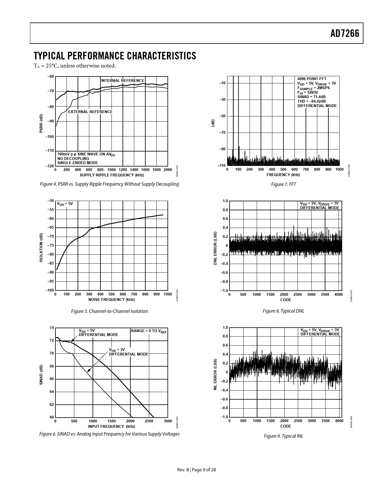 AD7266. TYPICAL PERFORMANCE CHARACTERISTICS. –60. INTERNAL REFERENCE. 4096 POINT FFT. –10. VDD = 5V, VDRIVE = 3V. –70. SAMPLE = 2MSPS