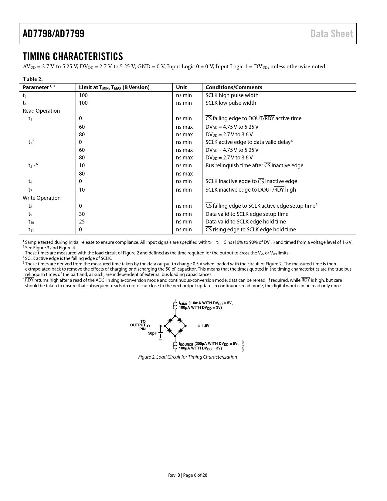 Seiten / Seite28 / 6 — AD7798/AD7799. Data Sheet. TIMING CHARACTERISTICS. Table 2. Parameter1, …