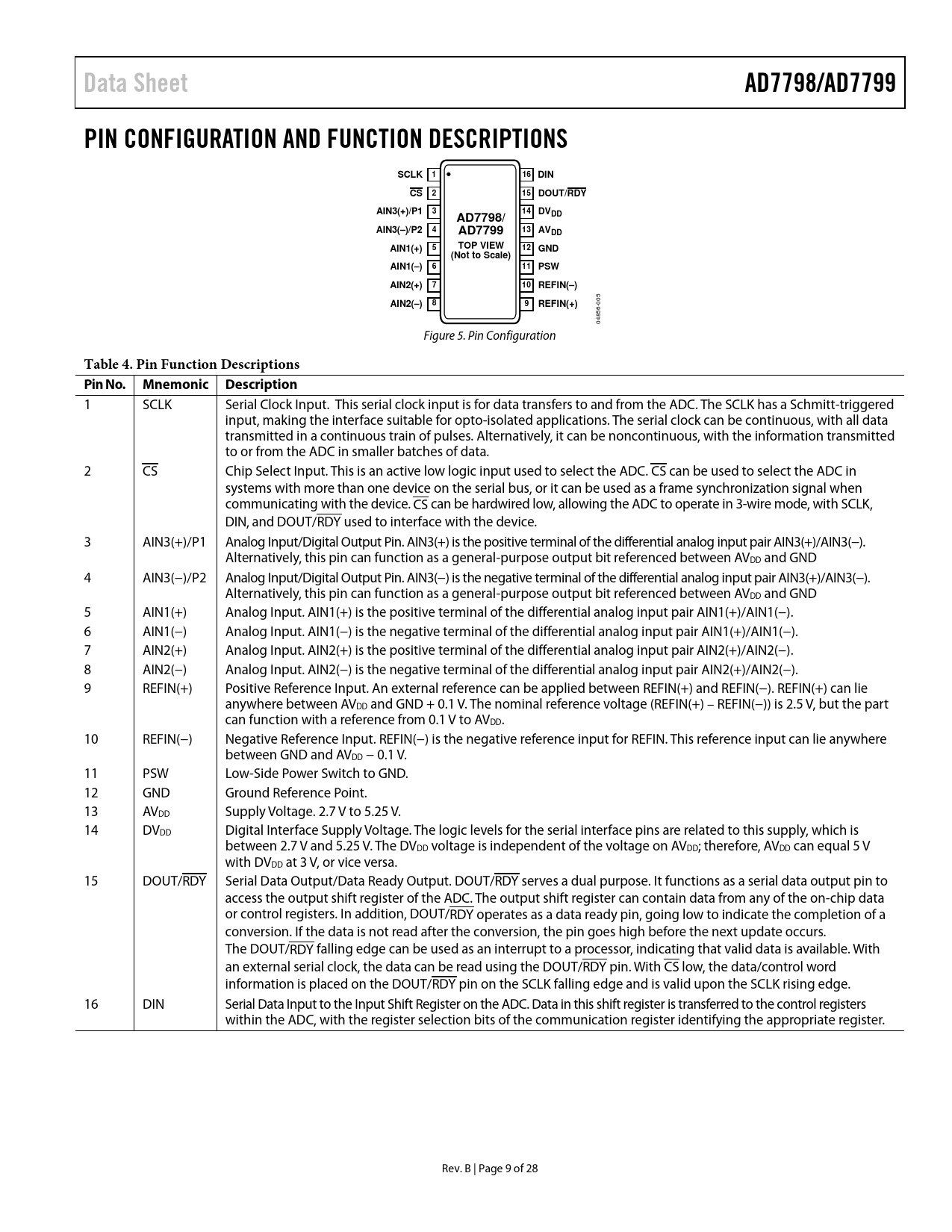 Seiten / Seite28 / 9 — Data Sheet. AD7798/AD7799. PIN CONFIGURATION AND FUNCTION DESCRIPTIONS. …