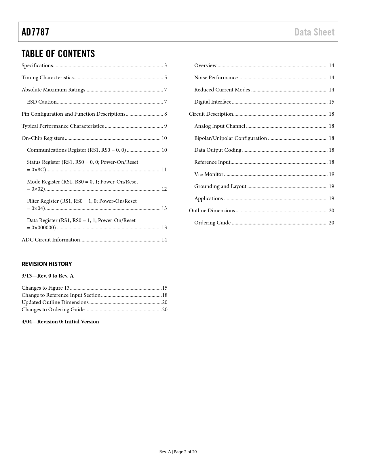 AD7787. Data Sheet. TABLE OF CONTENTS. REVISION HISTORY. 3/13—Rev. 0 to Rev. A. 4/04—Revision 0: Initial Version