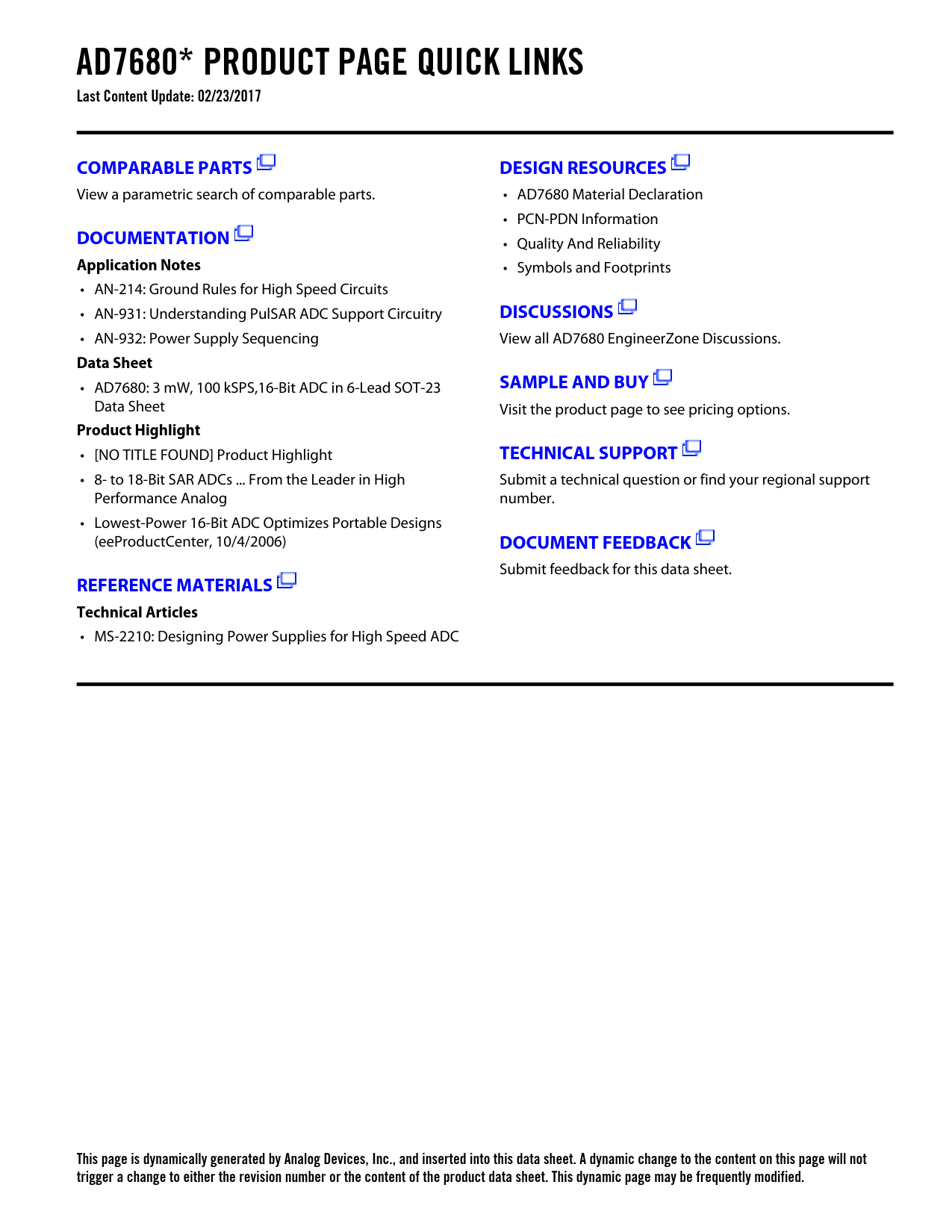 This page is dynamically generated by Analog Devices, Inc., and inserted into this data sheet. A dynamic change to the content on this page will not trigger a change to either the revision number or the content of the product data sheet. This dynamic page may be frequently modified.