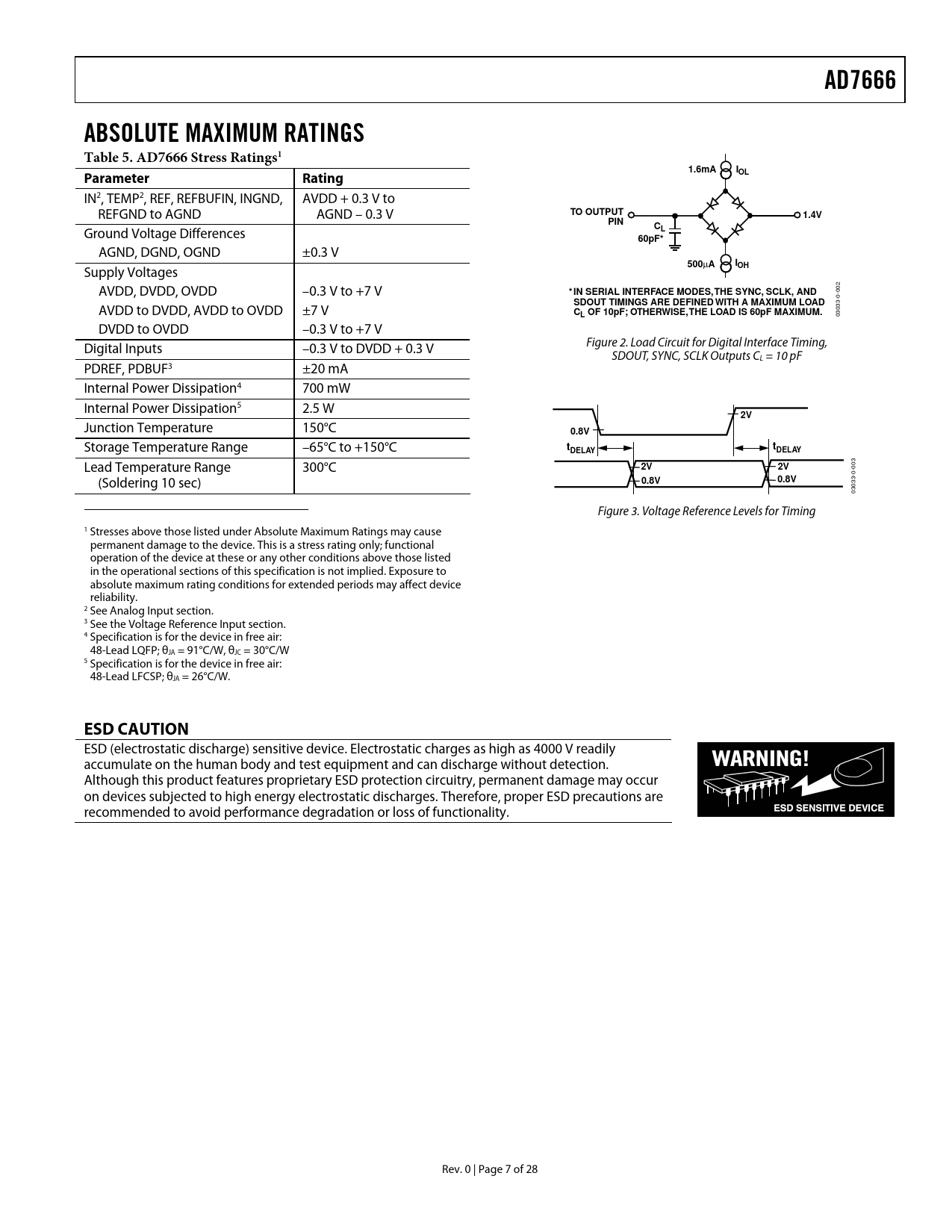AD7666 ABSOLUTE MAXIMUM RATINGS Table 5 AD7666 Stress Ratings1 1.6mA Parameter Rating TO OUTPUT 1.4V PIN 60pF* 500 IOH
