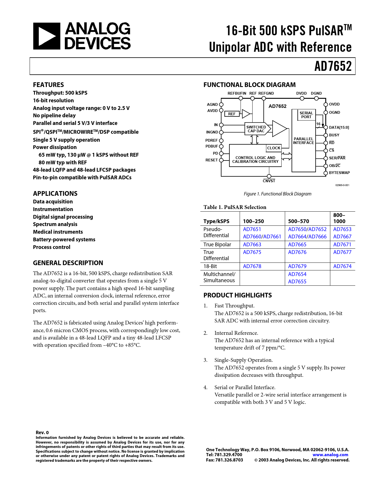 Datasheet AD7652 (Analog Devices)
