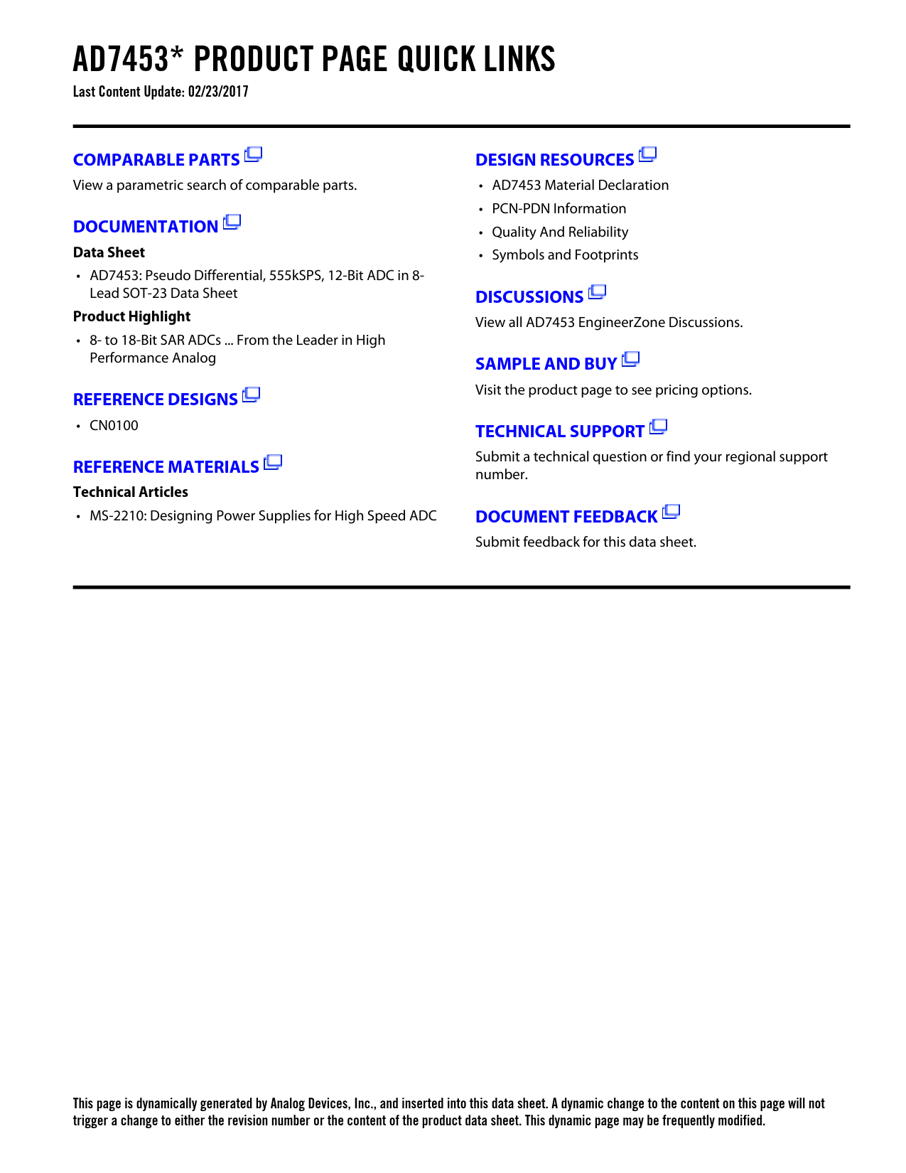 This page is dynamically generated by Analog Devices, Inc., and inserted into this data sheet. A dynamic change to the content on this page will not trigger a change to either the revision number or the content of the product data sheet. This dynamic page may be frequently modified.