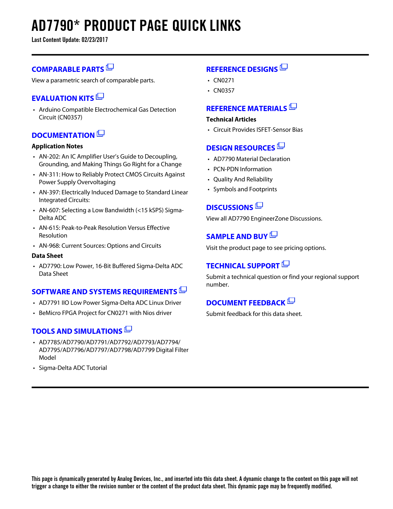 AD7790* PRODUCT PAGE QUICK LINKS Last Content Update: 02/23/2017 COMPARABLE PARTS REFERENCE DESIGNS EVALUATION KITS