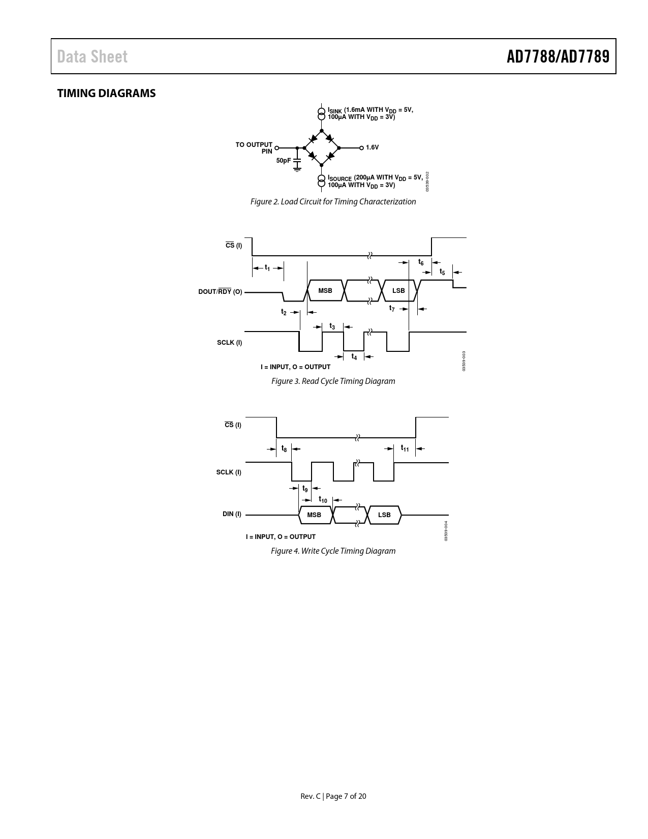 Data Sheet. AD7788/AD7789. TIMING DIAGRAMS. ISINK (1.6mA WITH VDD = 5V, 100µA WITH VDD = 3V). TO OUTPUT. 1.6V. PIN. 50pF