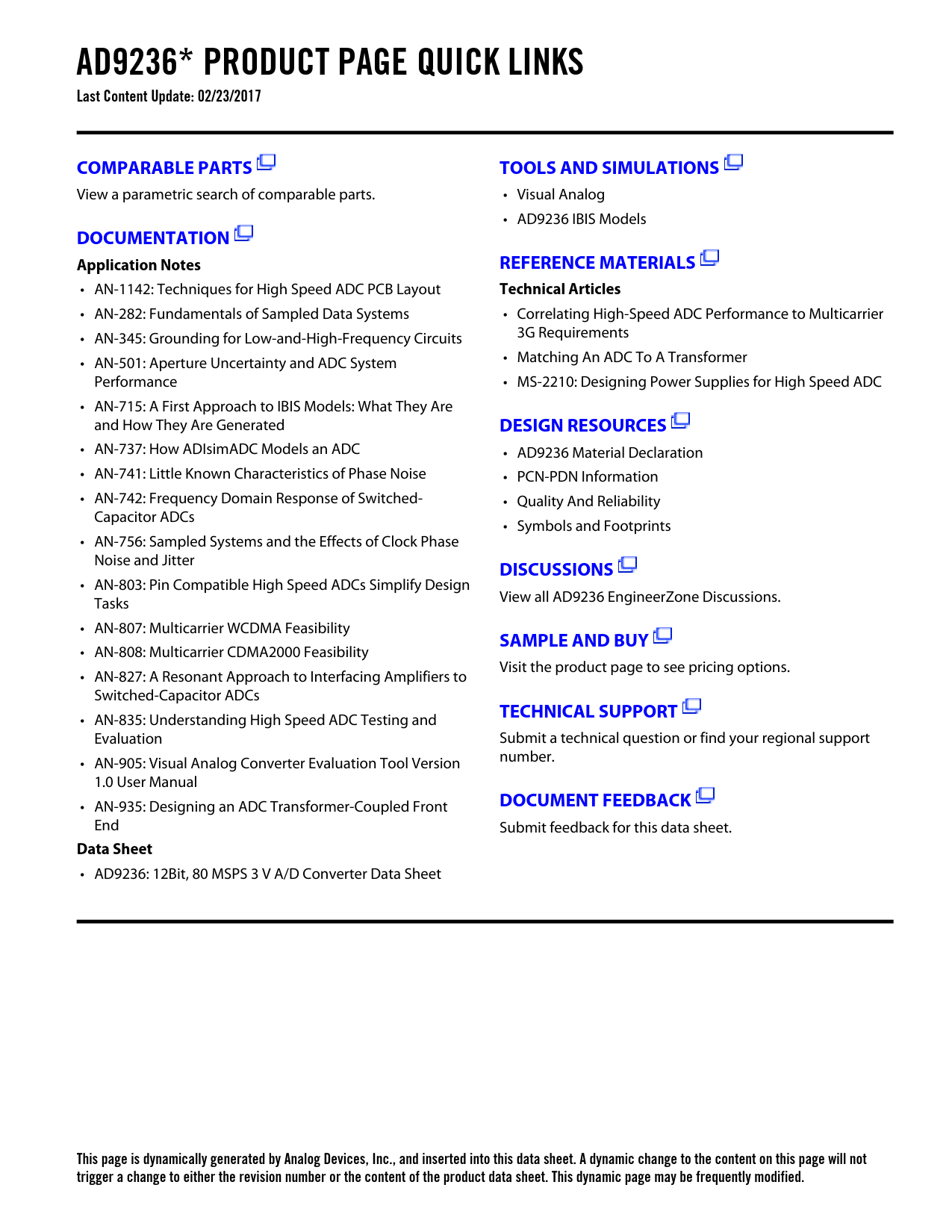 This page is dynamically generated by Analog Devices, Inc., and inserted into this data sheet. A dynamic change to the content on this page will not trigger a change to either the revision number or the content of the product data sheet. This dynamic page may be frequently modified.