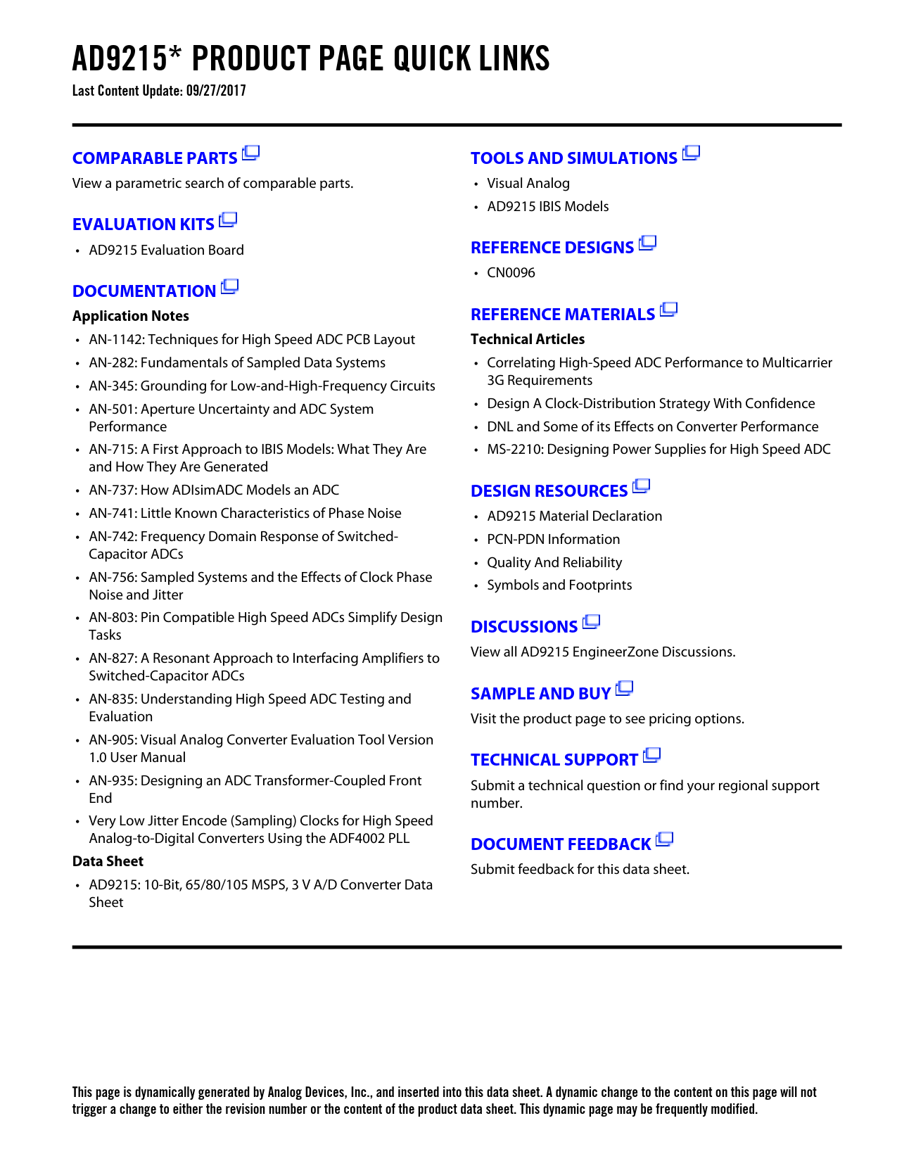 This page is dynamically generated by Analog Devices, Inc., and inserted into this data sheet. A dynamic change to the content on this page will not trigger a change to either the revision number or the content of the product data sheet. This dynamic page may be frequently modified.