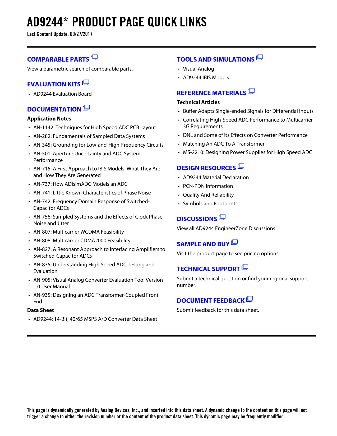 This page is dynamically generated by Analog Devices, Inc., and inserted into this data sheet. A dynamic change to the content on this page will not trigger a change to either the revision number or the content of the product data sheet. This dynamic page may be frequently modified.