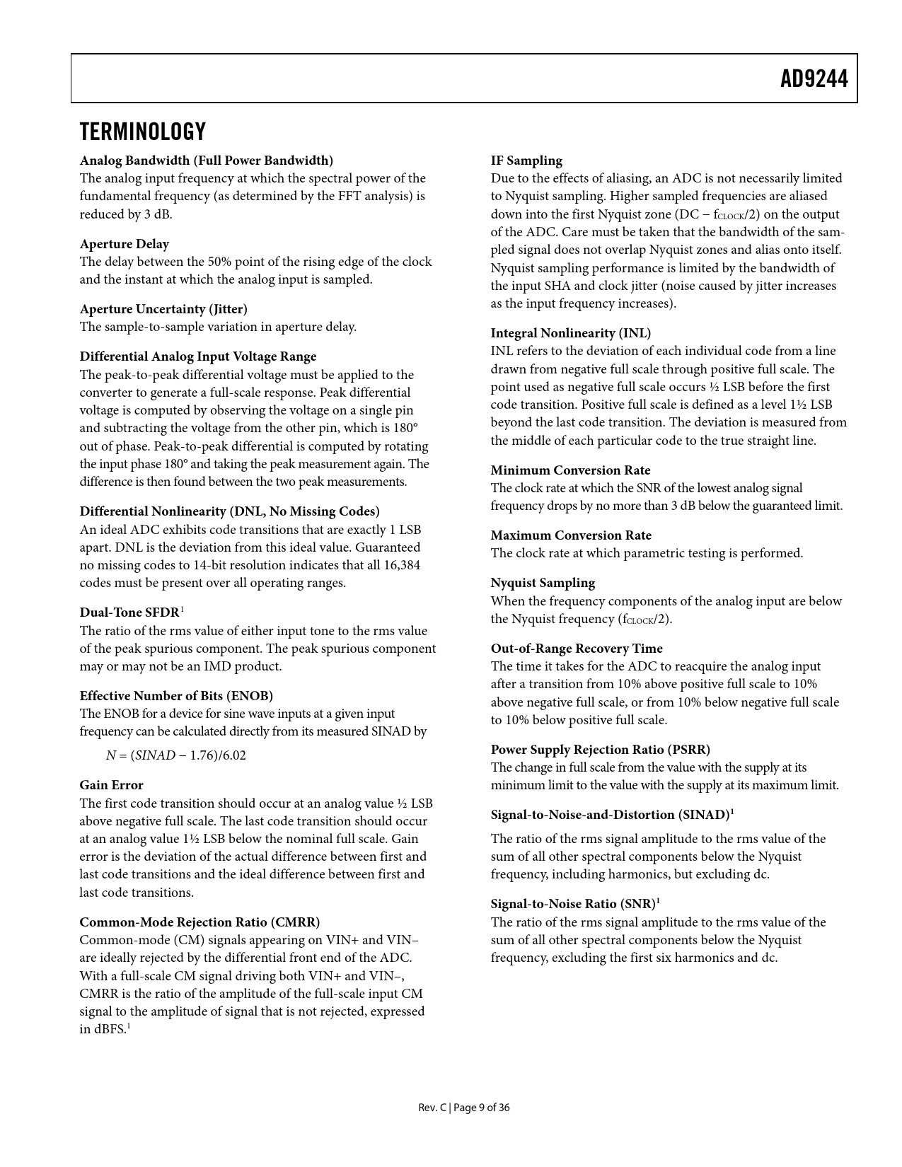 Seiten / Seite37 / 10 — AD9244. TERMINOLOGY Analog Bandwidth (Full Power Bandwidth). IF Sampling. …