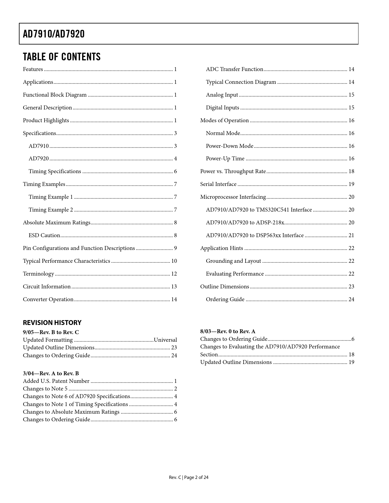AD7910/AD7920. TABLE OF CONTENTS. REVISION HISTORY. 9/05—Rev. B to Rev. C. 8/03—Rev. 0 to Rev. A. 3/04—Rev. A to Rev. B