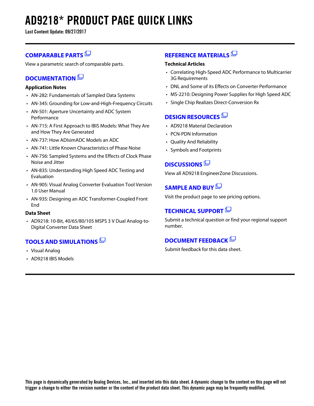 This page is dynamically generated by Analog Devices, Inc., and inserted into this data sheet. A dynamic change to the content on this page will not trigger a change to either the revision number or the content of the product data sheet. This dynamic page may be frequently modified.