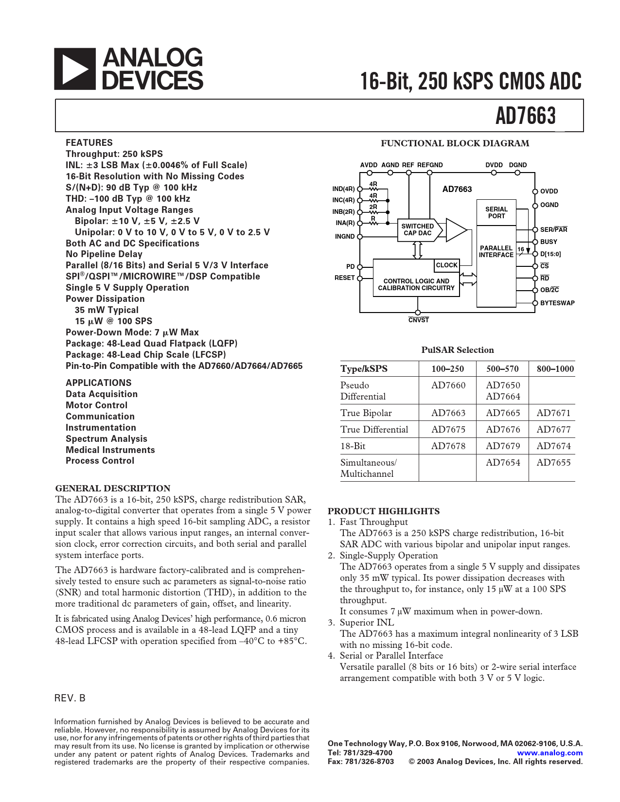 | Seiten / Seite | 25 / 1 — 16-Bit, 250 kSPS CMOS ADC. AD7663. FEATURES. FUNCTIONAL BLOCK DIAGRAM. … |