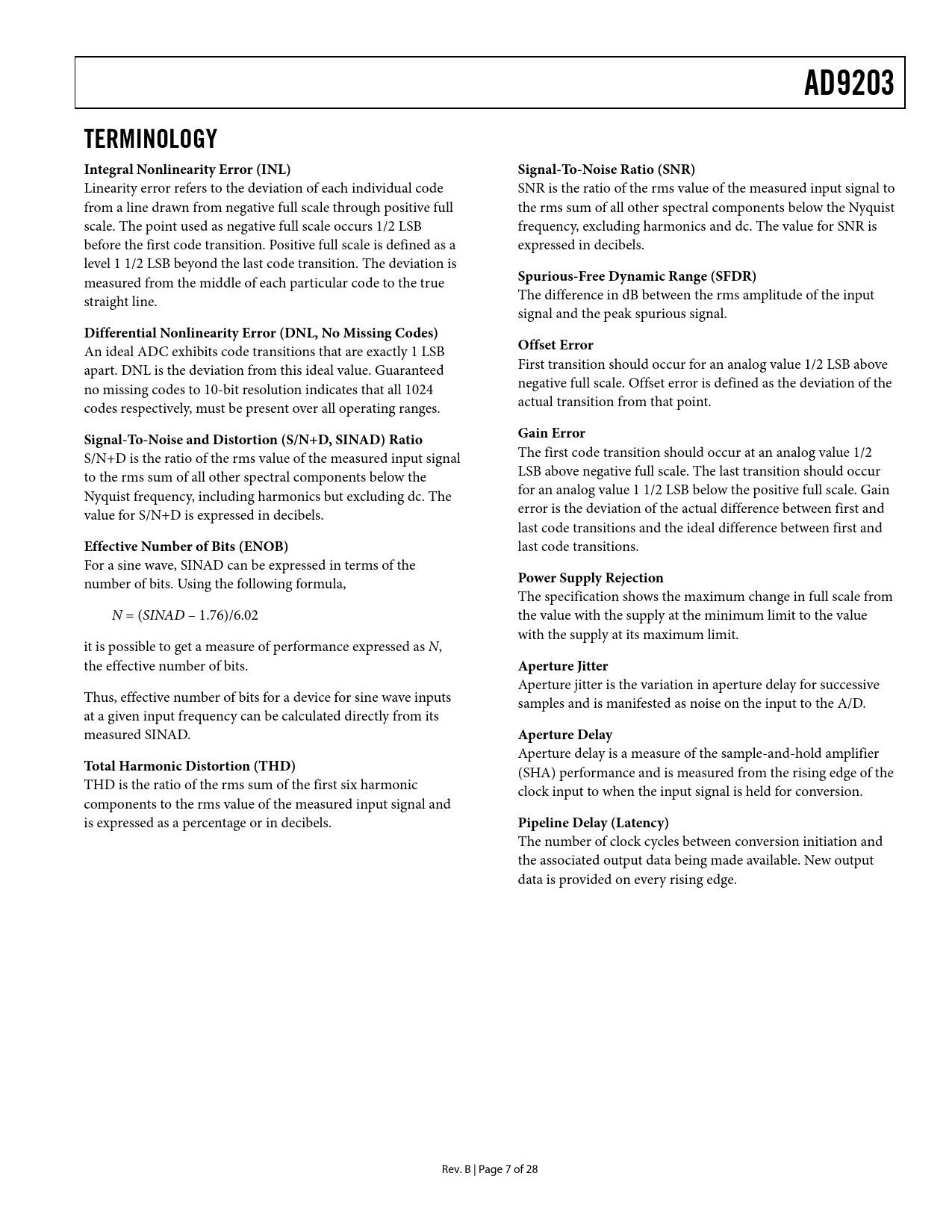 Seiten / Seite29 / 8 — AD9203. TERMINOLOGY Integral Nonlinearity Error (INL). Signal-To-Noise …