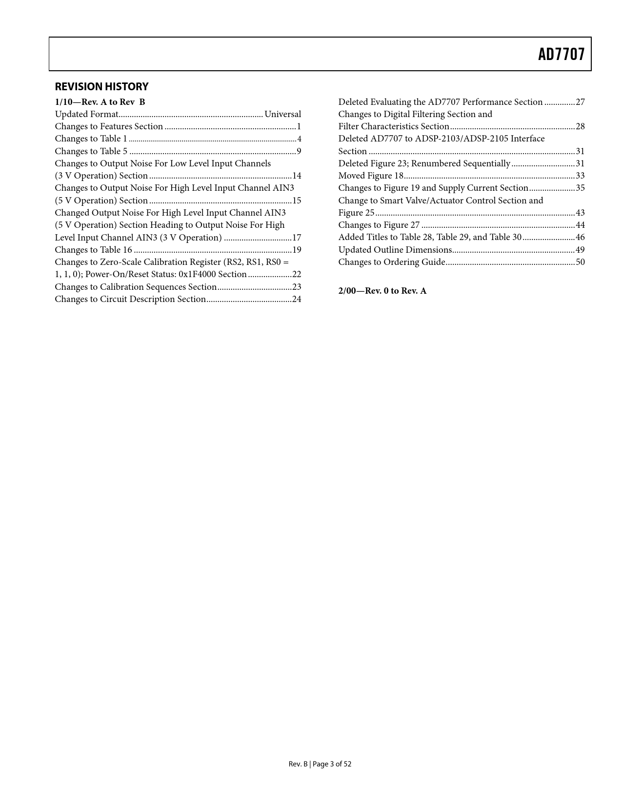 | Seiten / Seite | 53 / 4 — AD7707. REVISION HISTORY. 1/10—Rev. A to Rev B. 2/00—Rev. 0 to Rev. A |
