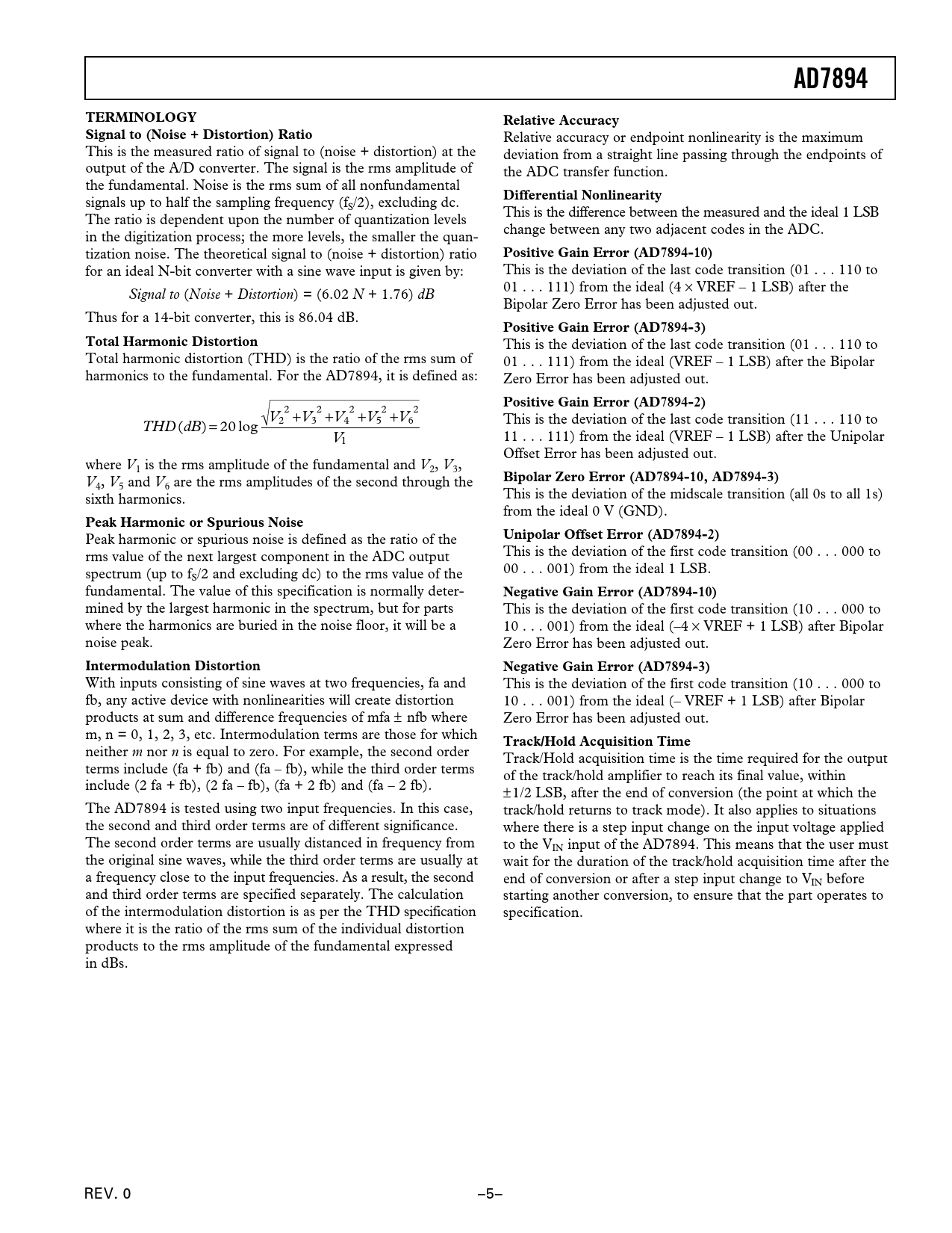 Seiten / Seite13 / 6 — AD7894. TERMINOLOGY. Relative Accuracy. Signal to (Noise + Distortion) …