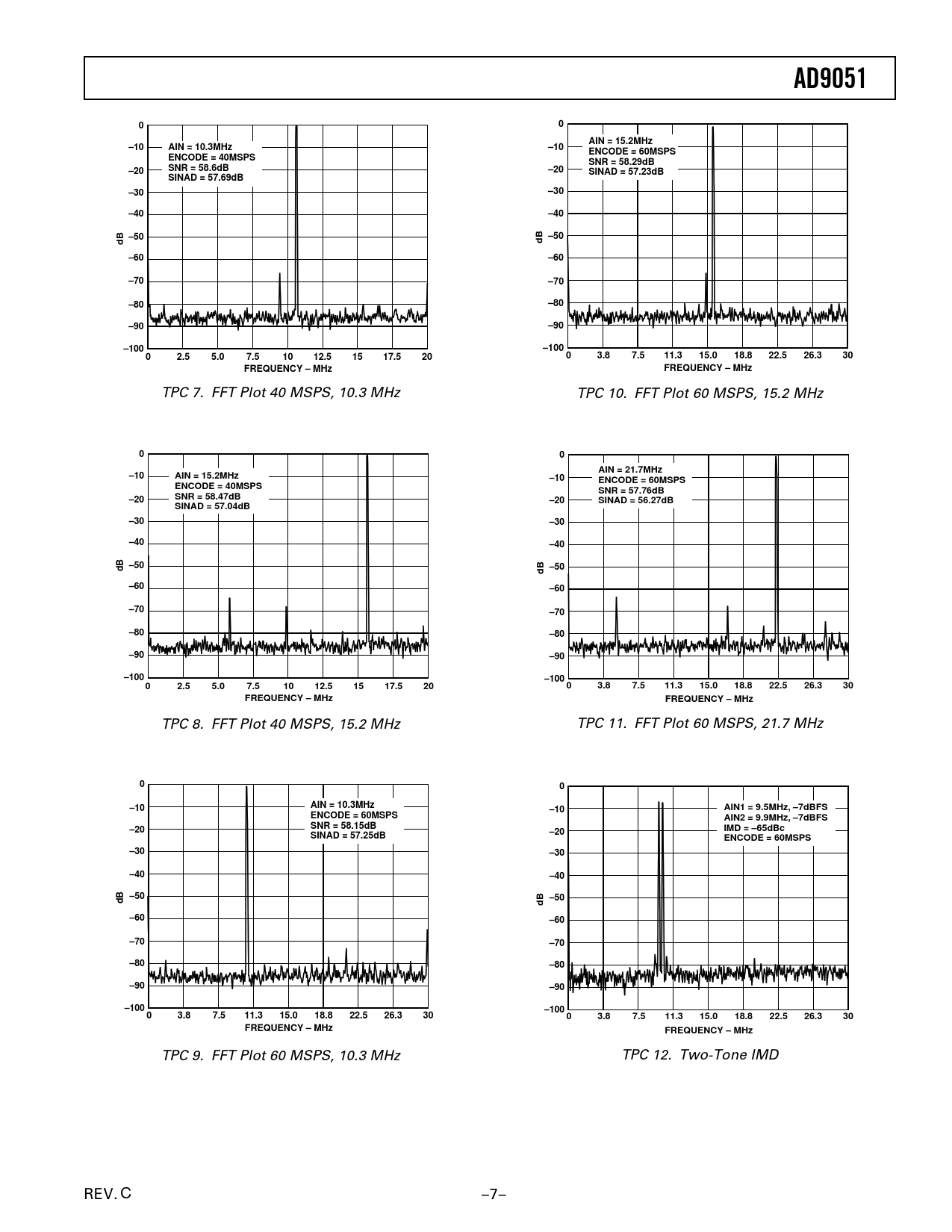 TPC 9. FFT Plot 60 MSPS, 10.3 MHz TPC 12. Two-Tone IMD REV. C –7–