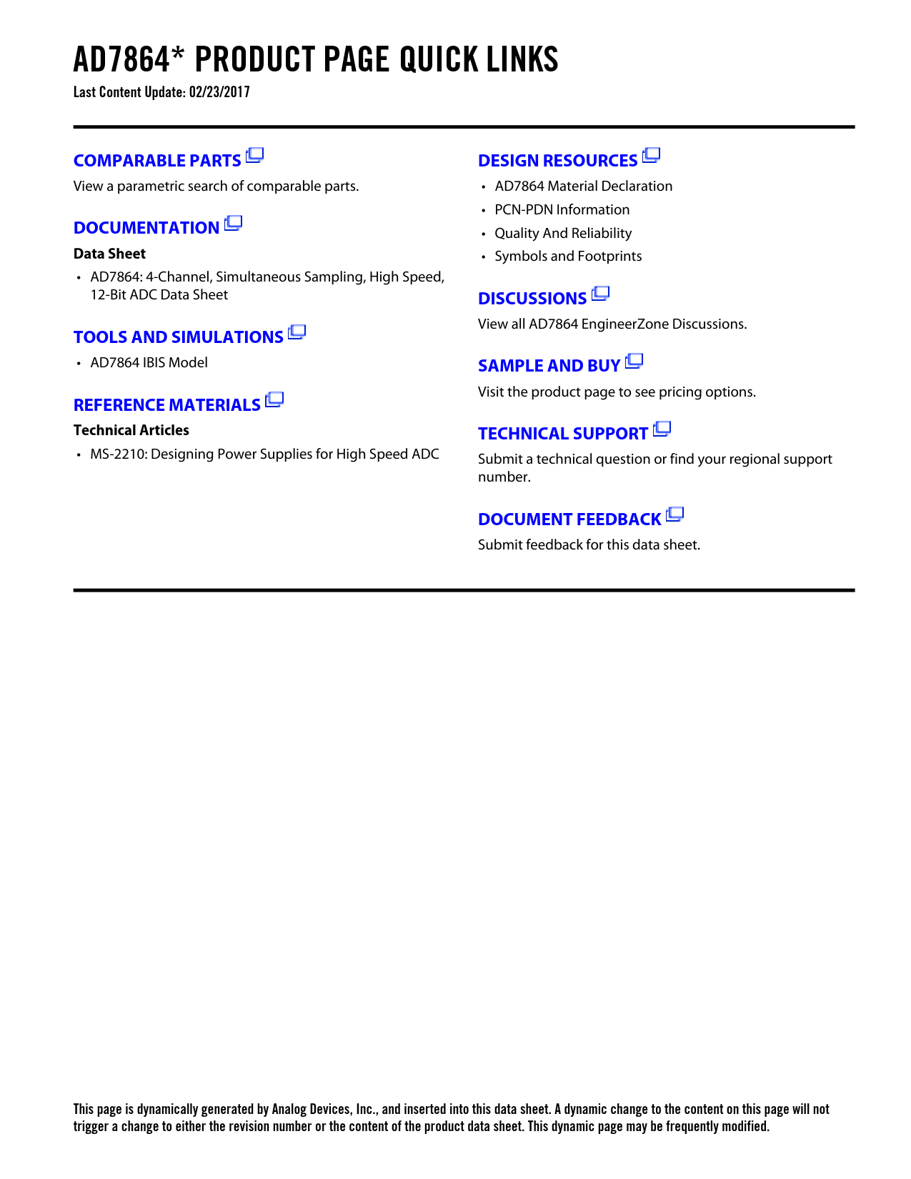 This page is dynamically generated by Analog Devices, Inc., and inserted into this data sheet. A dynamic change to the content on this page will not trigger a change to either the revision number or the content of the product data sheet. This dynamic page may be frequently modified.