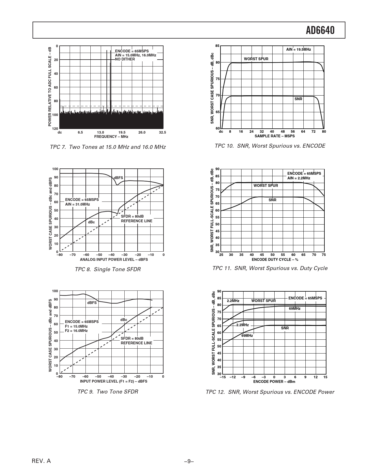 TPC 7. Two Tones at 15.0 MHz and 16.0 MHz TPC 10. SNR, Worst Spurious vs. ENCODE