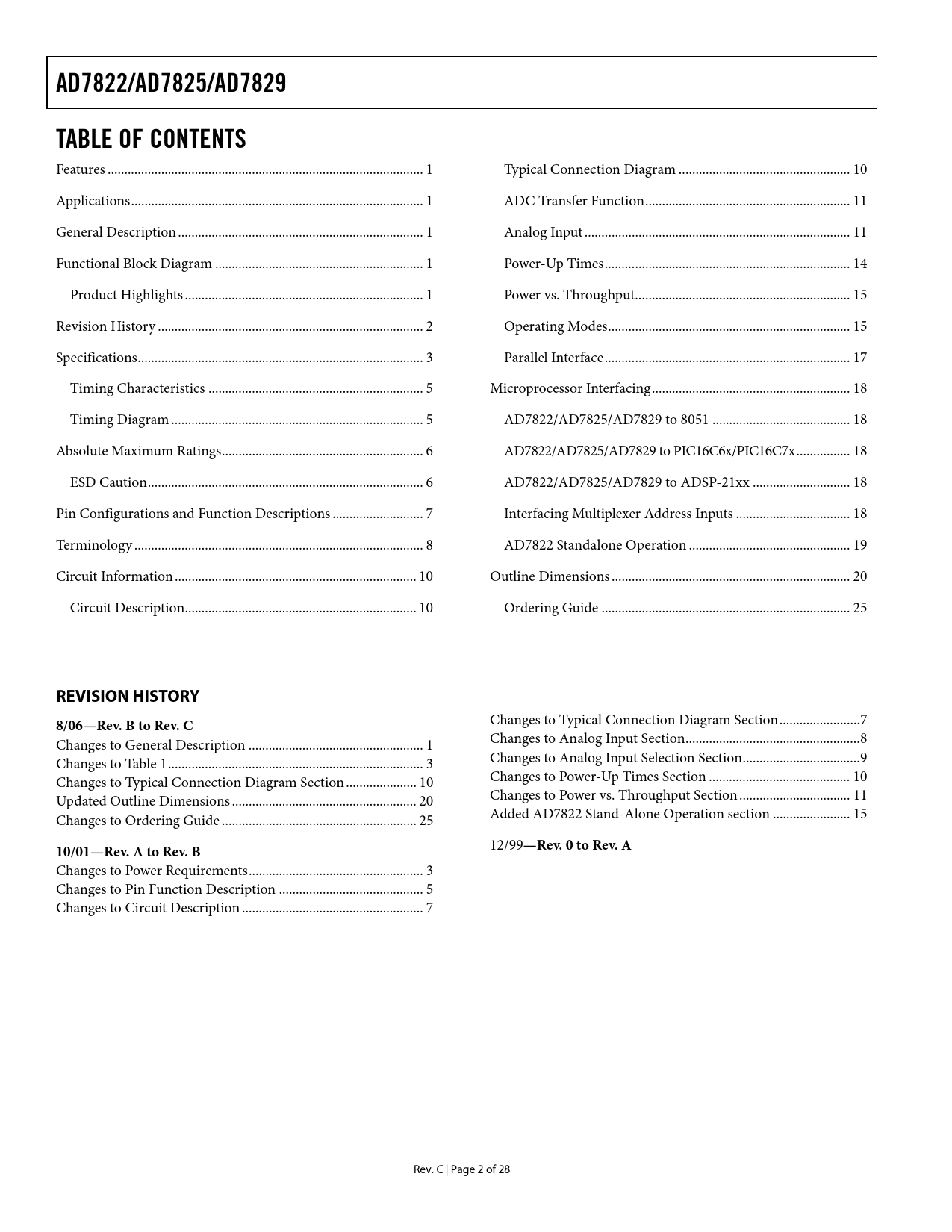 AD7822/AD7825/AD7829. TABLE OF CONTENTS. REVISION HISTORY. 8/06—Rev. B to Rev. C. 10/01—Rev. A to Rev. B. —Rev. 0 to Rev. A