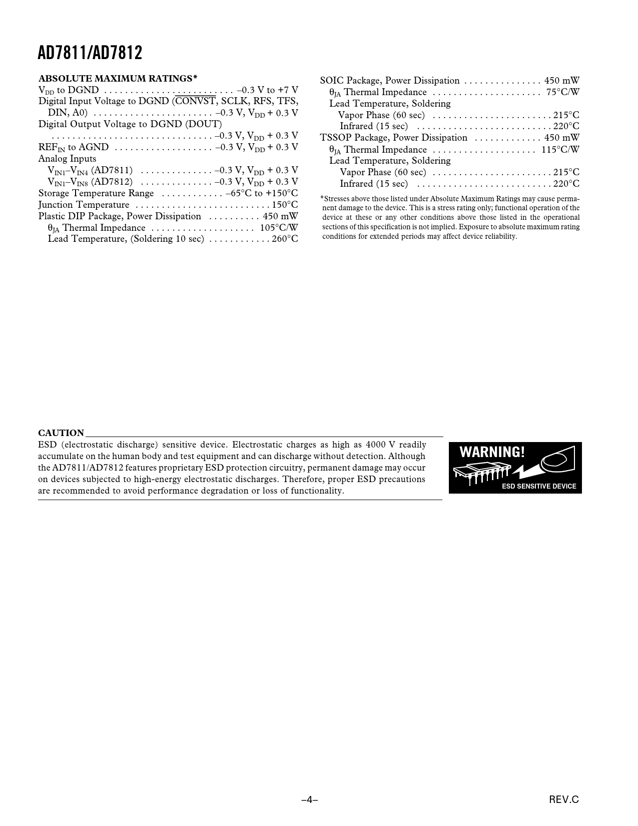 Datasheet AD7811, AD7812 (Analog Devices) - 4