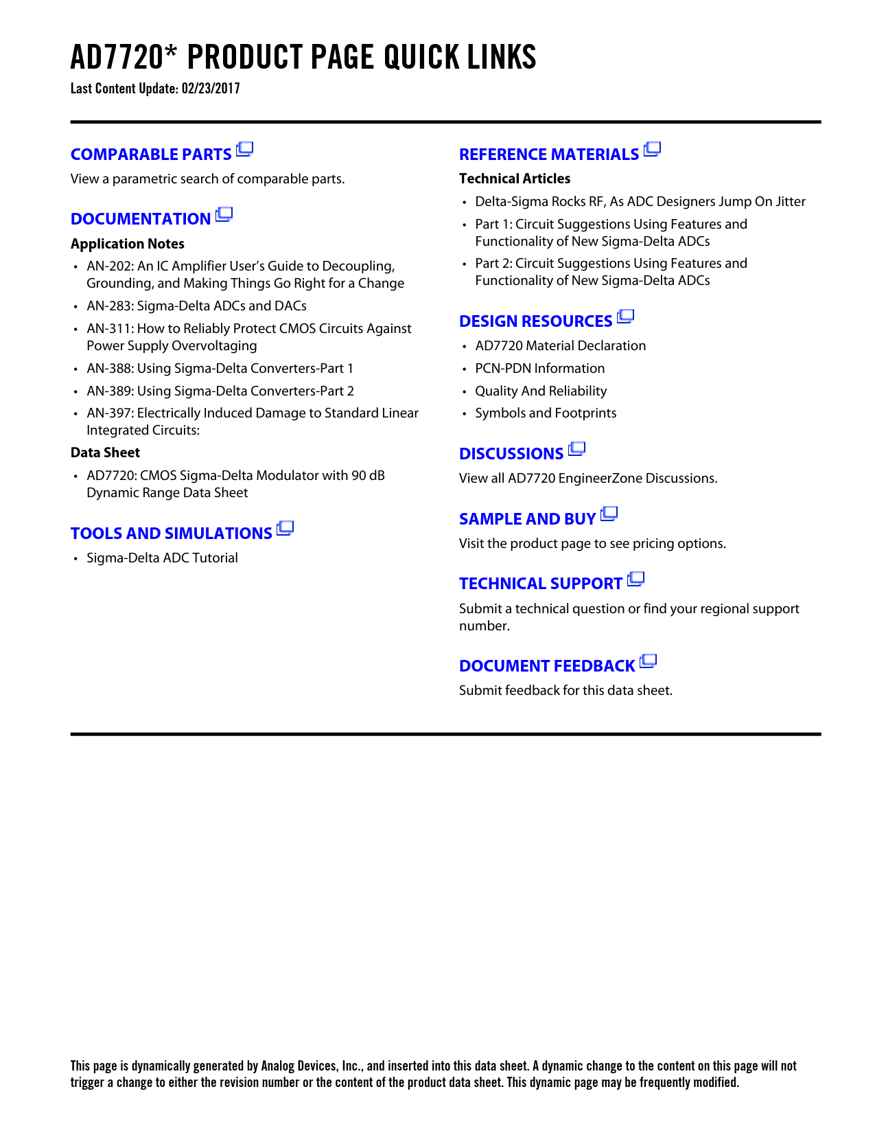 This page is dynamically generated by Analog Devices, Inc., and inserted into this data sheet. A dynamic change to the content on this page will not trigger a change to either the revision number or the content of the product data sheet. This dynamic page may be frequently modified.