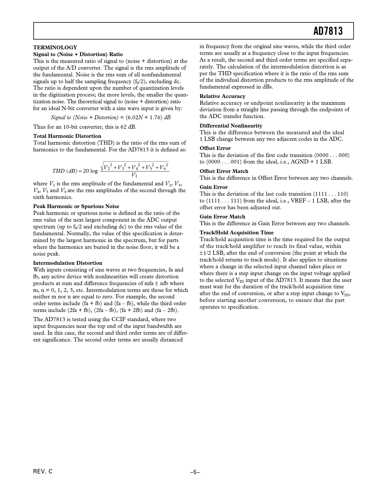 Seiten / Seite12 / 6 — AD7813. TERMINOLOGY. Signal to (Noise + Distortion) Ratio. Relative …