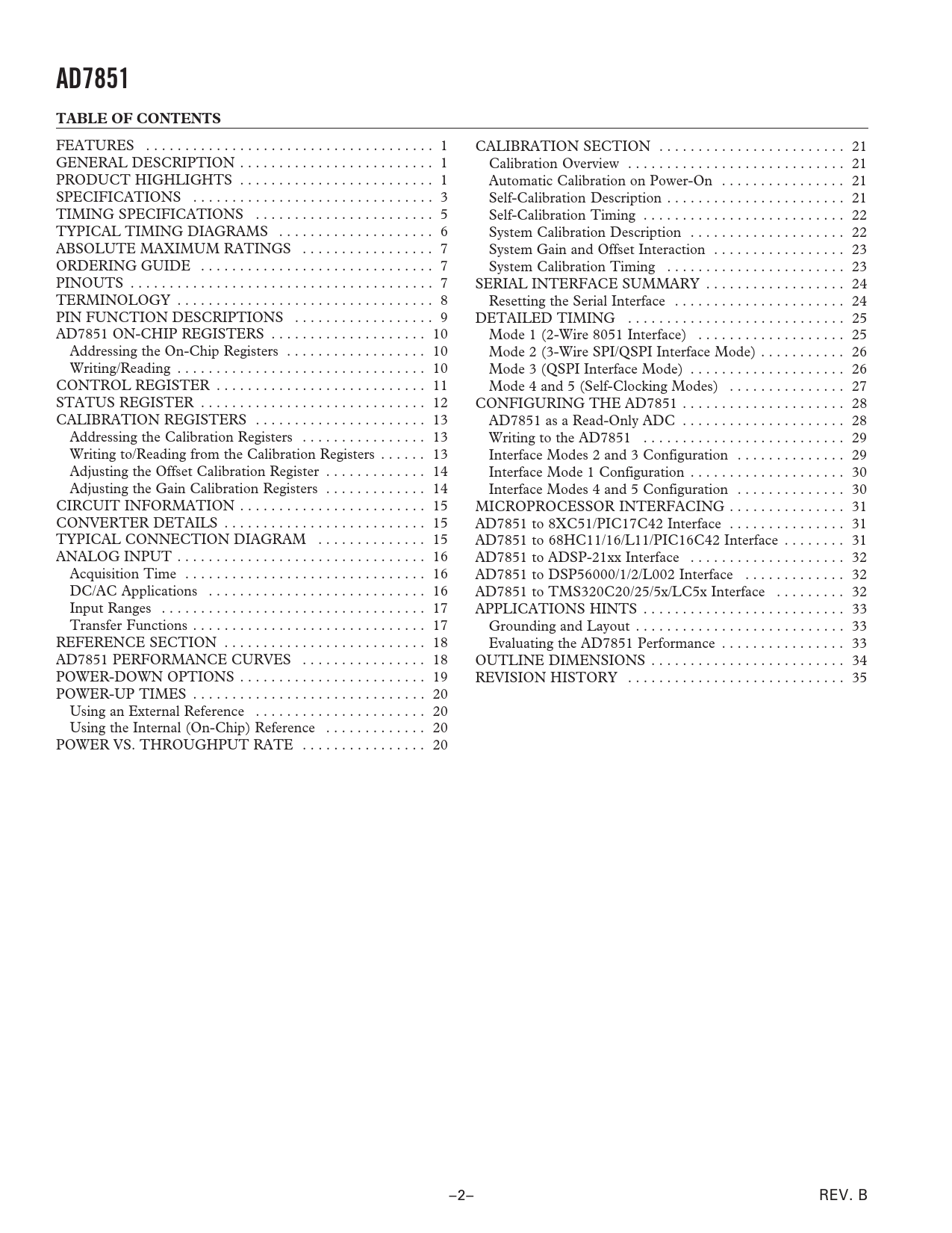 AD7851 TABLE OF CONTENTS