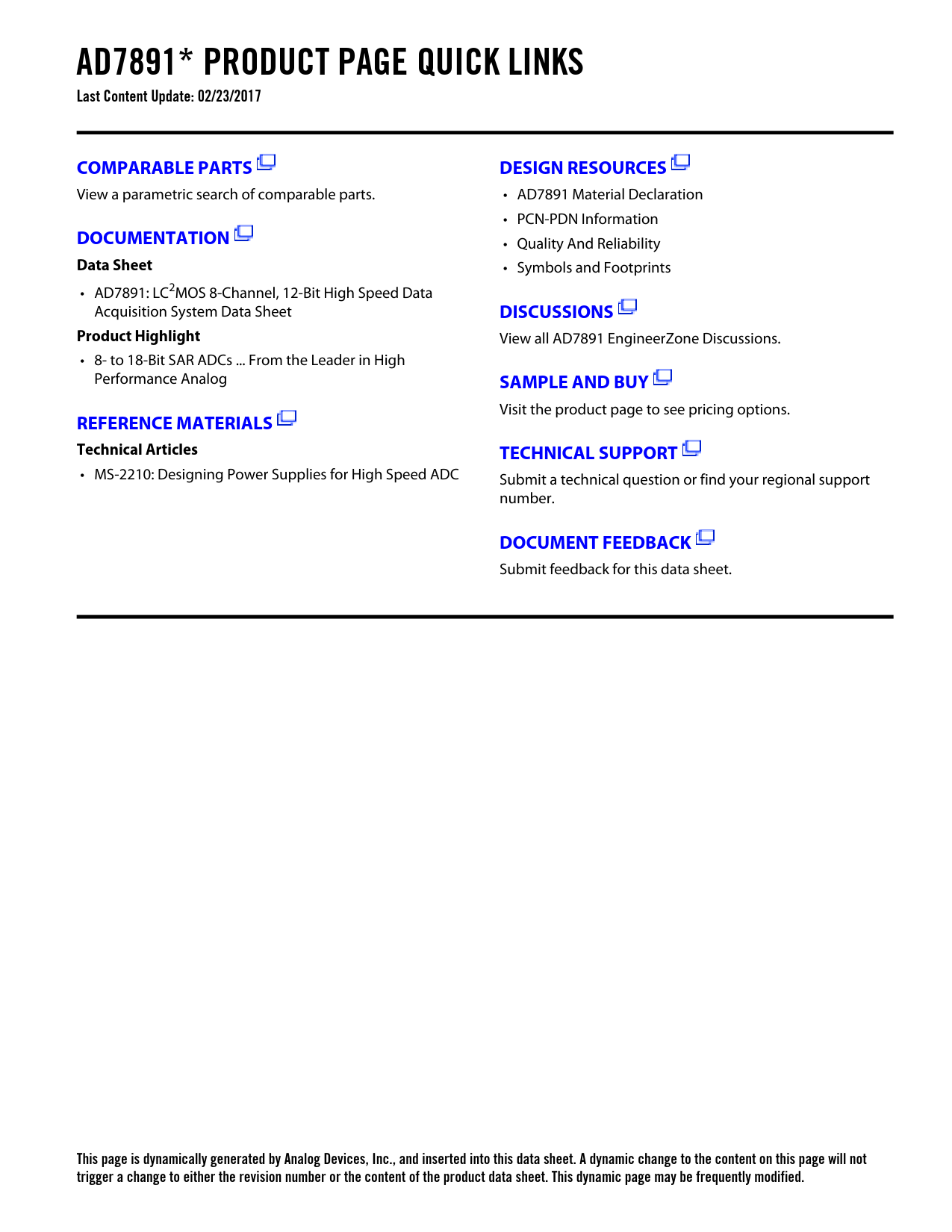 This page is dynamically generated by Analog Devices, Inc., and inserted into this data sheet. A dynamic change to the content on this page will not trigger a change to either the revision number or the content of the product data sheet. This dynamic page may be frequently modified.