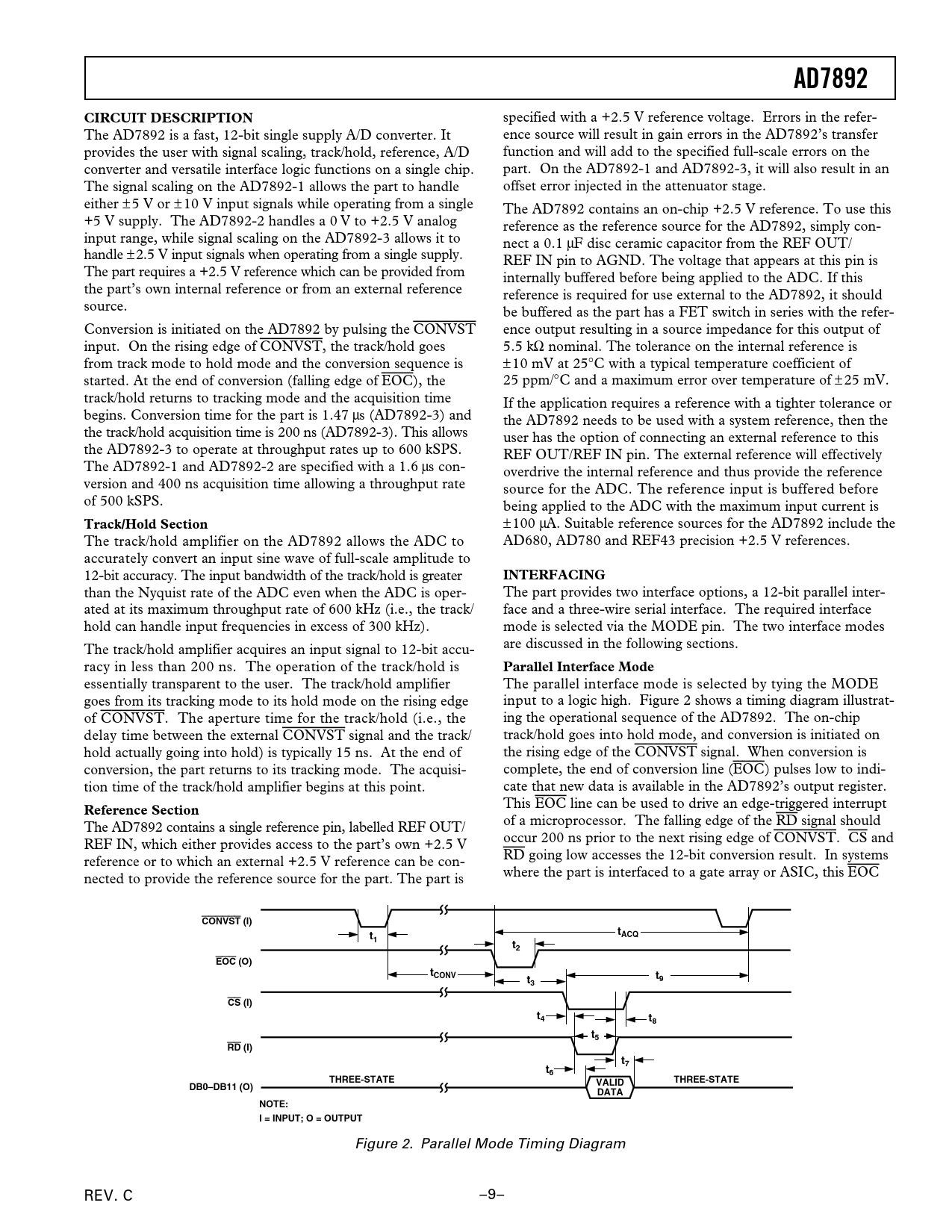 AD7892 CIRCUIT DESCRIPTION Track/Hold Section INTERFACING Parallel Interface Mode Reference Section CONVST (I) tACQ EOC (O)