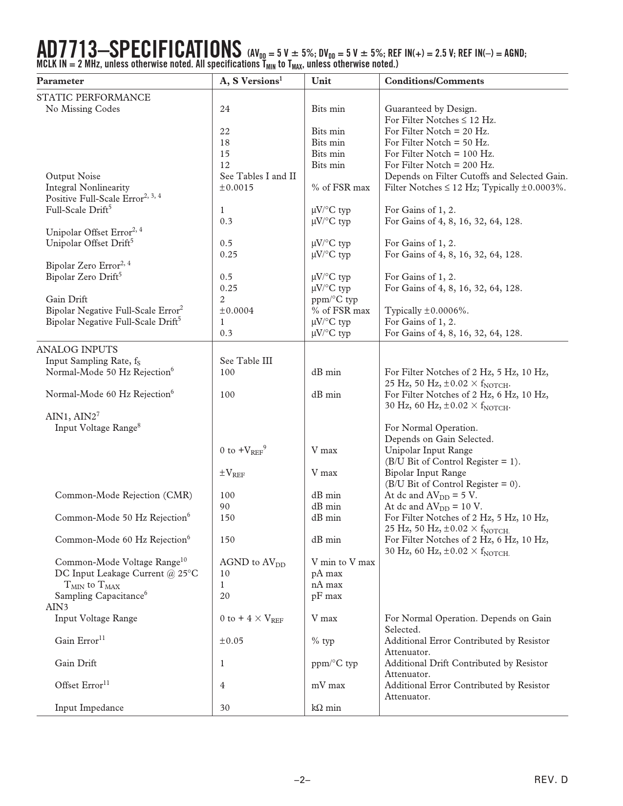 AD7713–SPECIFICATIONS (AVDD = 5 V