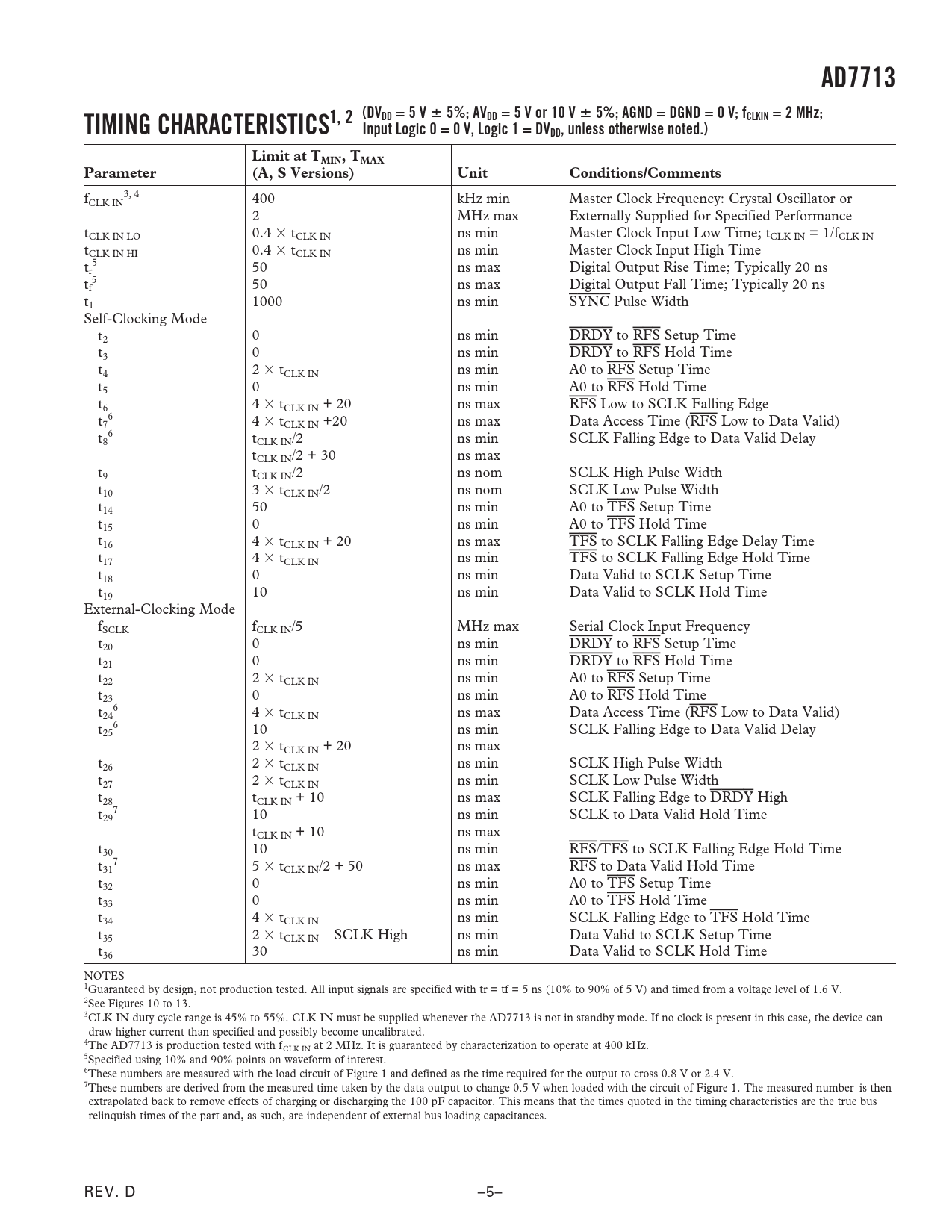 AD7713 TIMING CHARACTERISTICS1, 2 (DVDD = 5 V