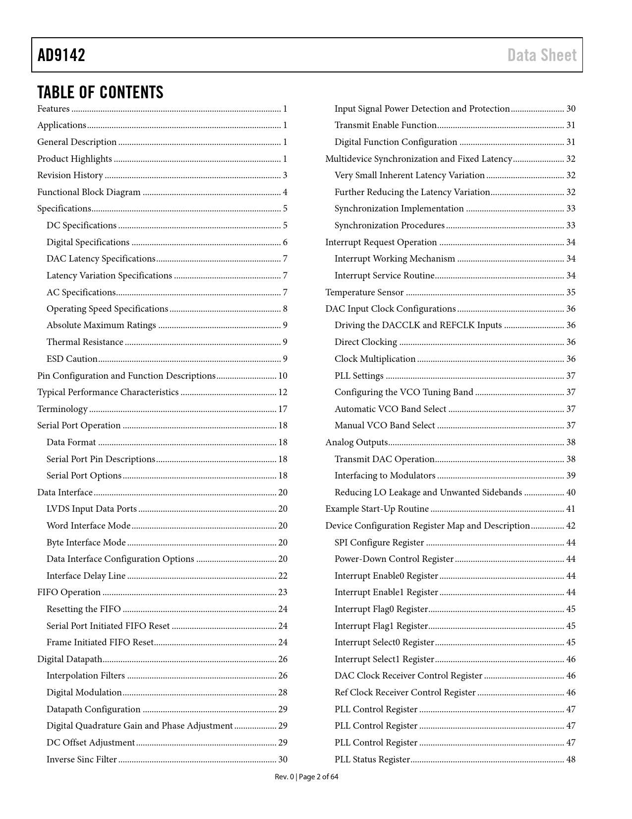 Seiten / Seite65 / 3 — AD9142. Data Sheet. TABLE OF CONTENTS