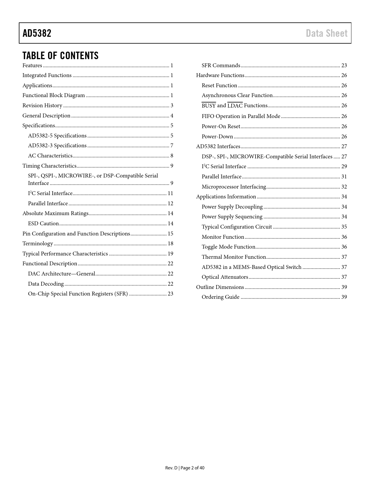 Seiten / Seite41 / 3 — AD5382. Data Sheet. TABLE OF CONTENTS