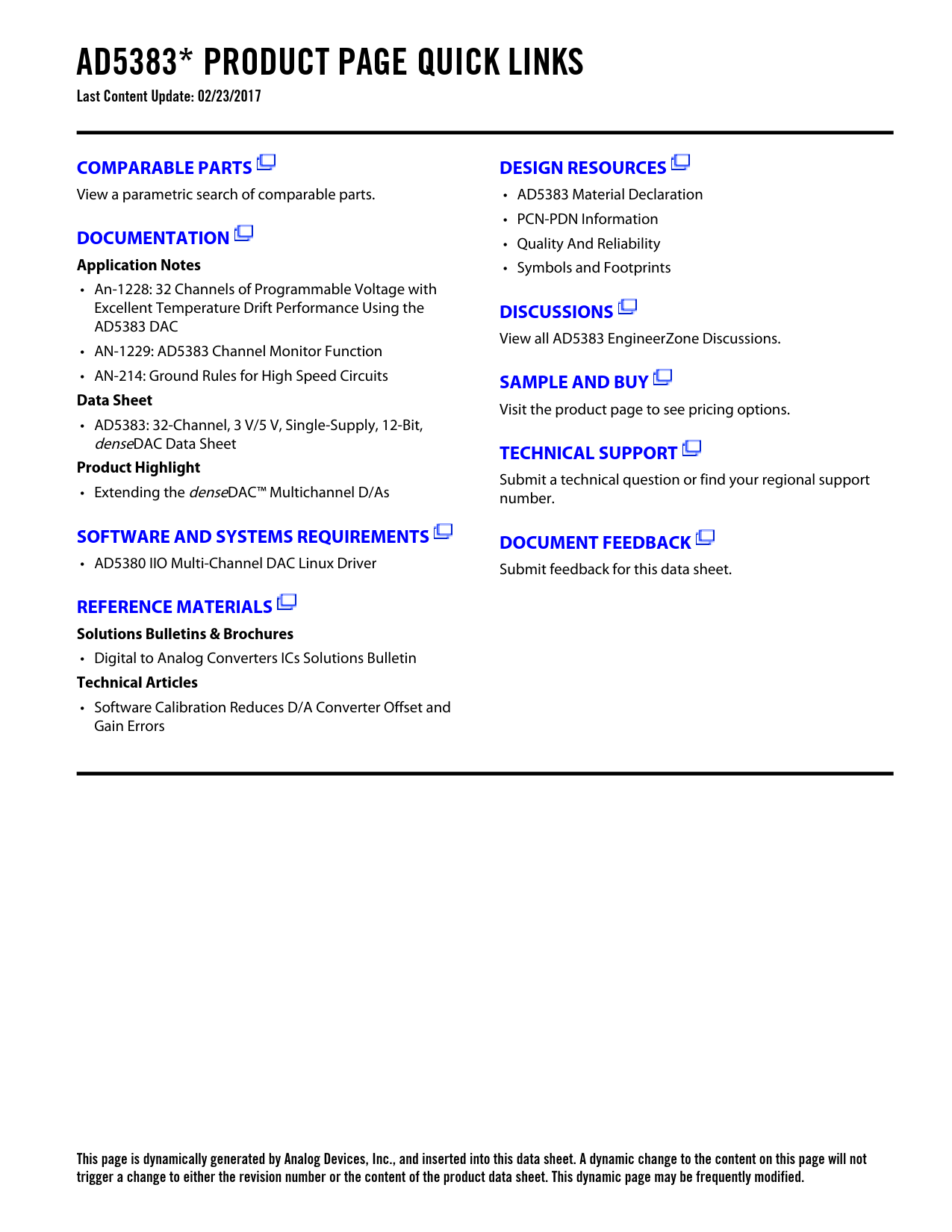AD5383* PRODUCT PAGE QUICK LINKS Last Content Update: 02/23/2017. COMPARABLE PARTS. DESIGN RESOURCES. DOCUMENTATION