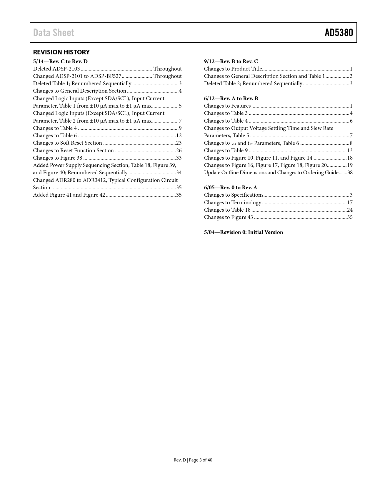 Seiten / Seite41 / 4 — Data Sheet. AD5380. REVISION HISTORY 5/14—Rev. C to Rev. D. 9/12—Rev. B …