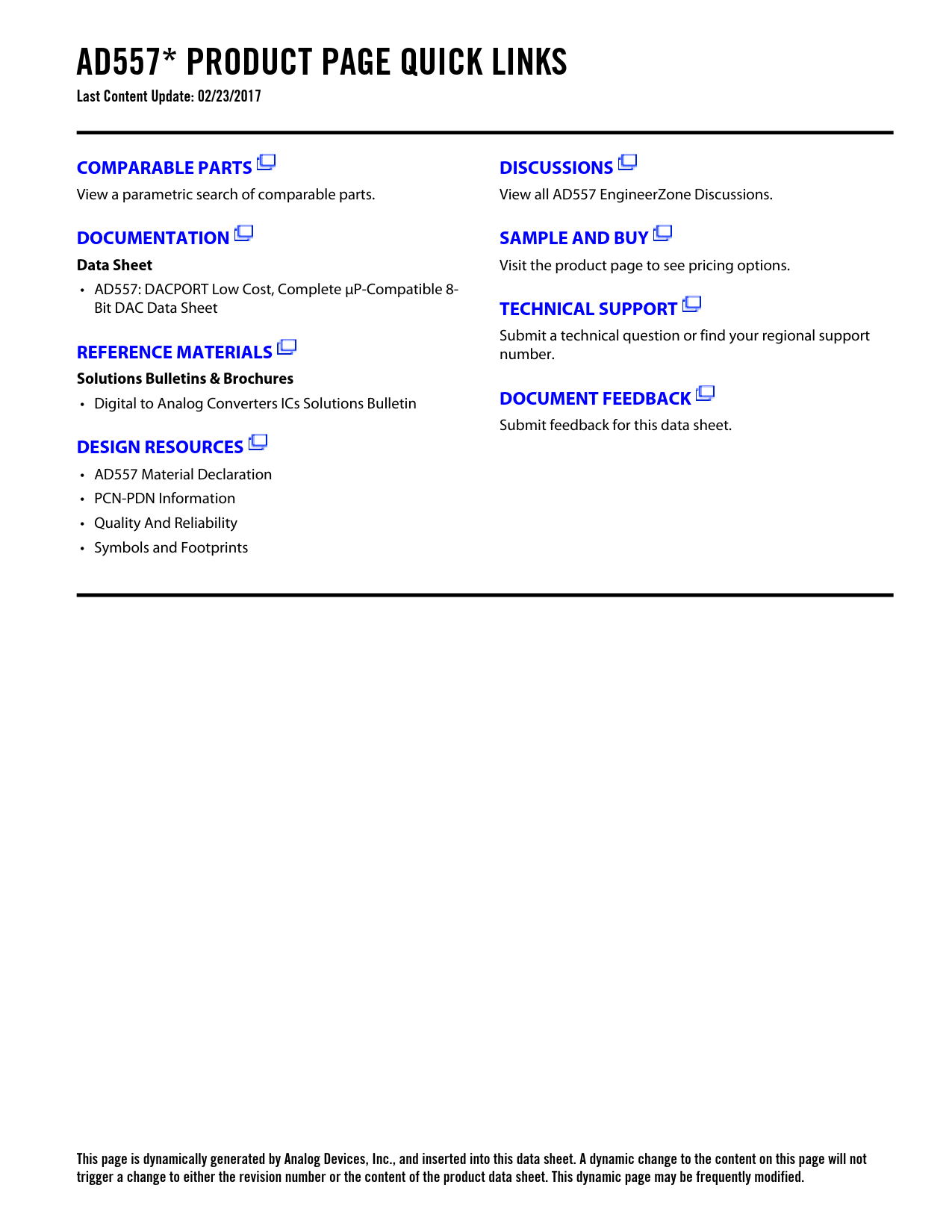 AD557* PRODUCT PAGE QUICK LINKS Last Content Update: 02/23/2017 COMPARABLE PARTS DISCUSSIONS