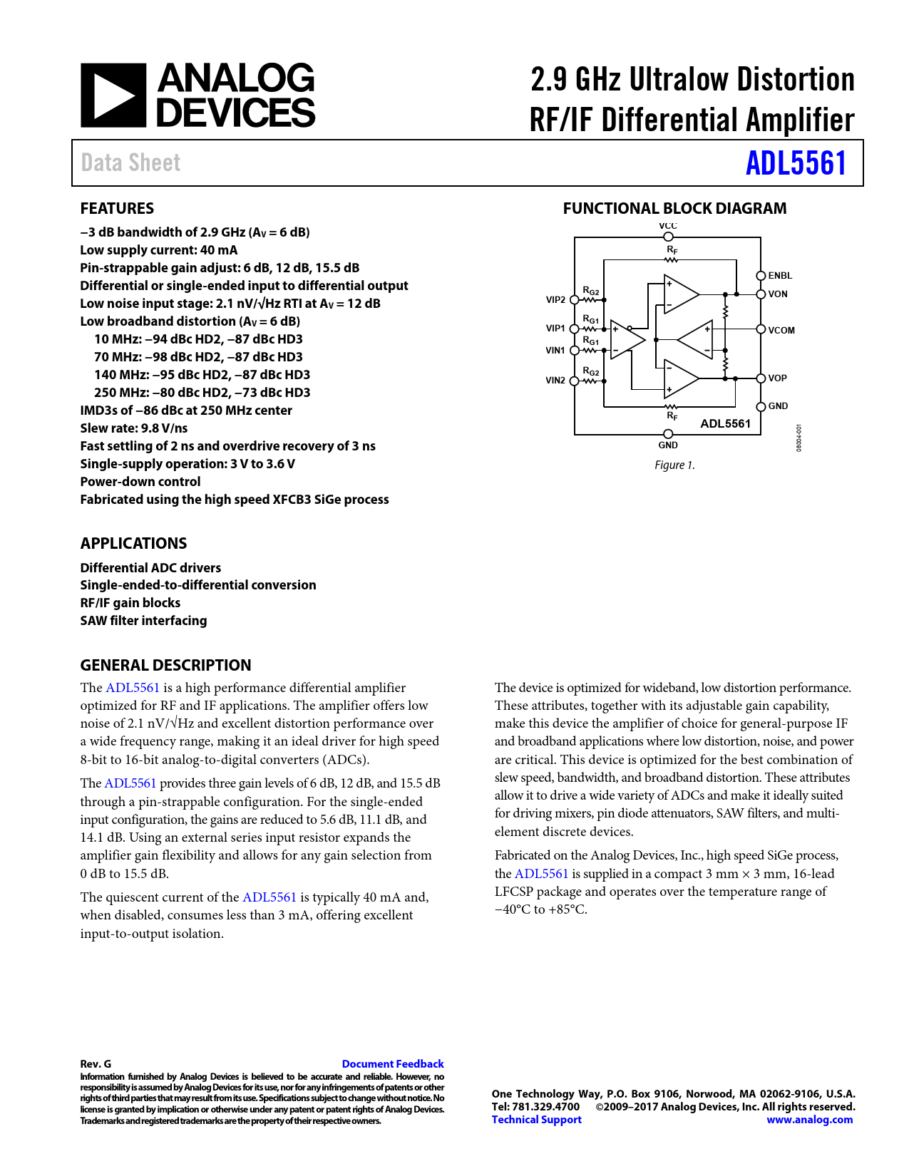 Datasheet ADL5561 (Analog Devices)