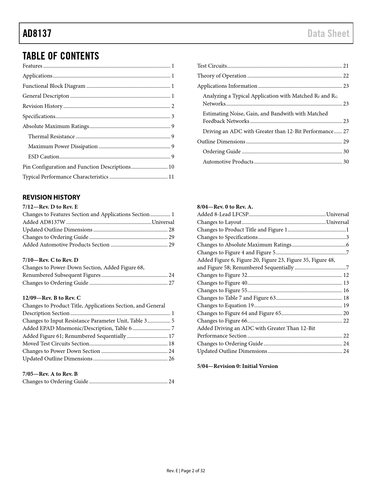 REVISION HISTORY 7/12—Rev. D to Rev. E 8/04—Rev. 0 to Rev. A.