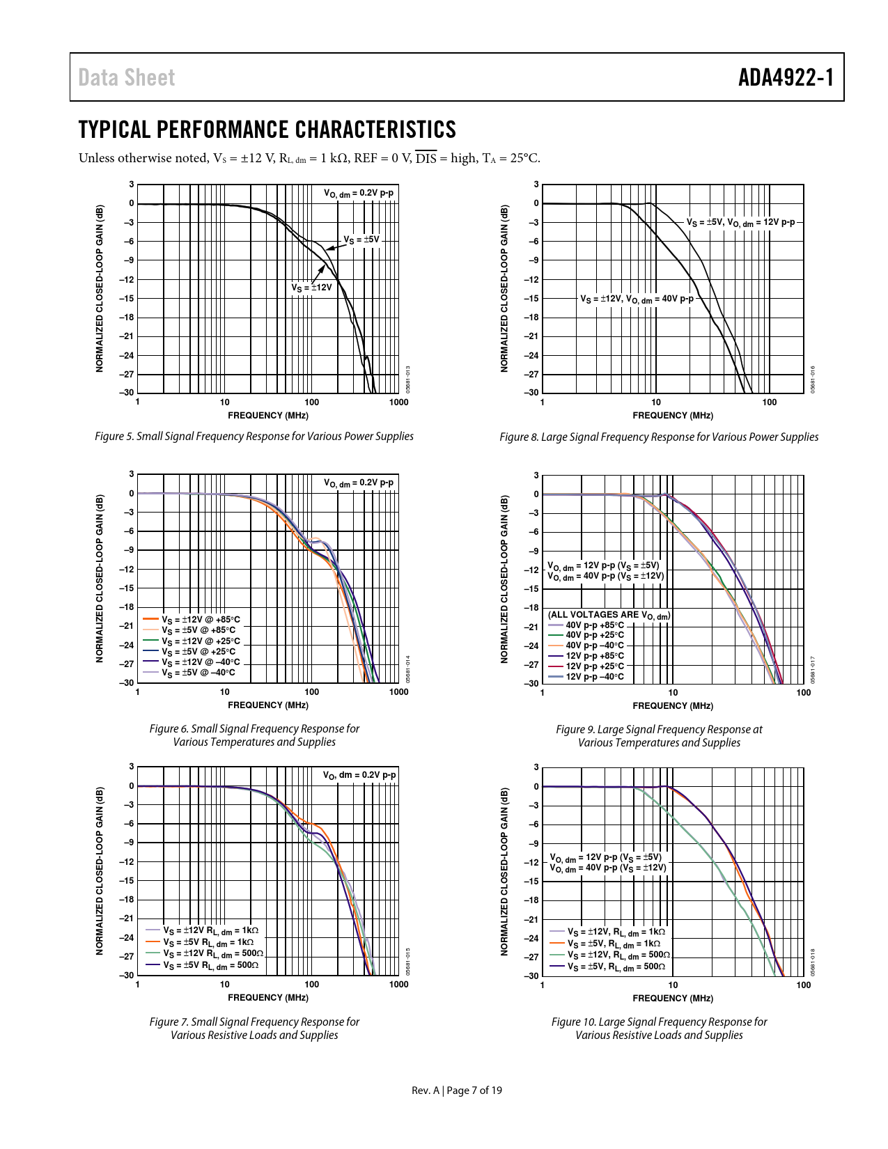 Data Sheet. ADA4922-1. TYPICAL PERFORMANCE CHARACTERISTICS. VO, dm = 0.2V p-p. VS =. 5V, VO, dm = 12V p-p. GAIN (dB). S =. -LOOP. –12. 12V