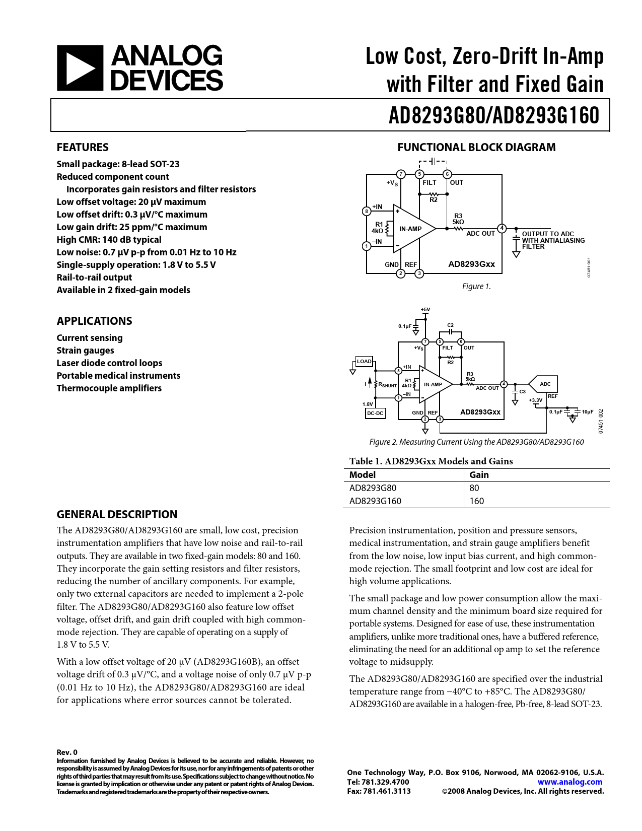 Datasheet AD8293G80, AD8293G160 (Analog Devices)