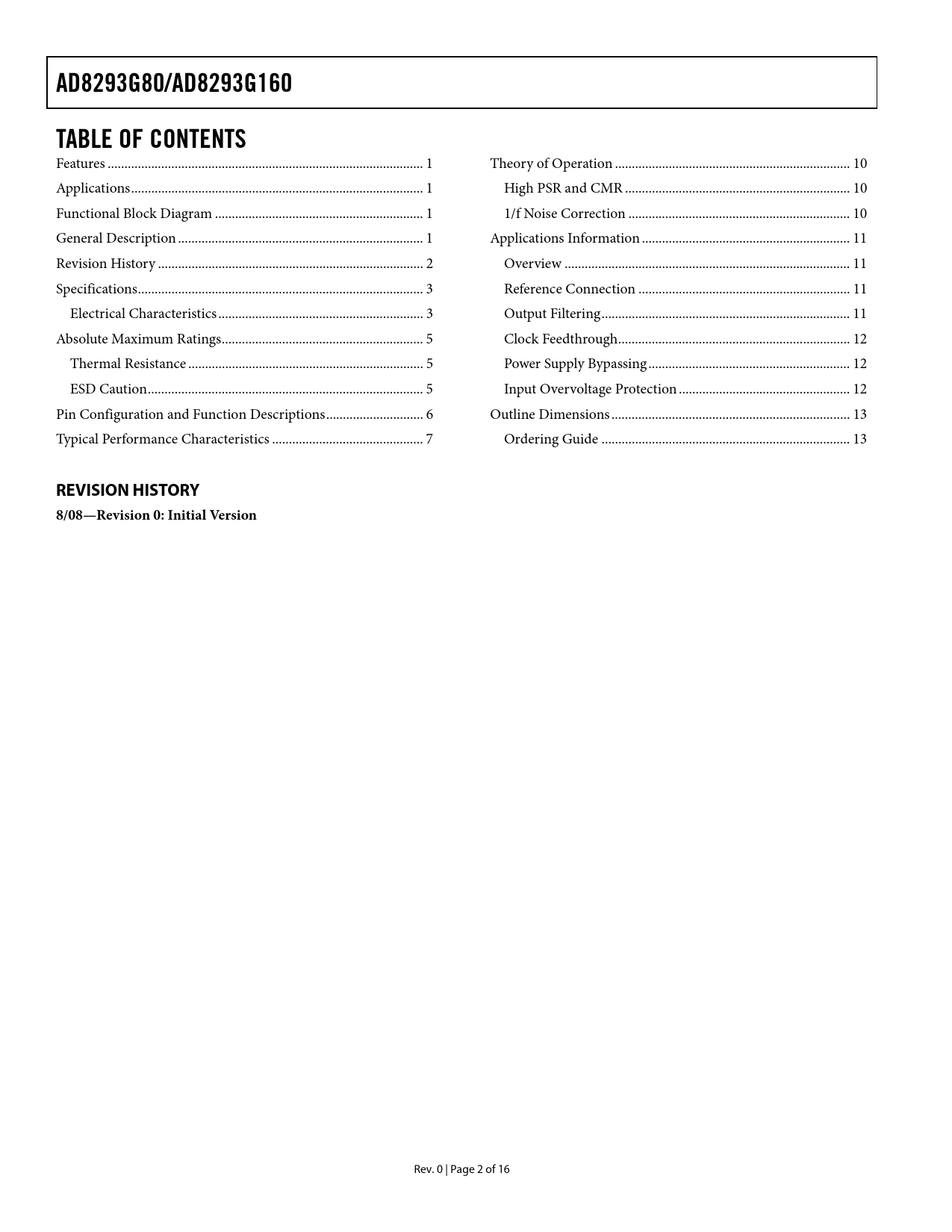 Seiten / Seite16 / 2 — AD8293G80/AD8293G160. TABLE OF CONTENTS. REVISION HISTORY. 8/08—Revision …
