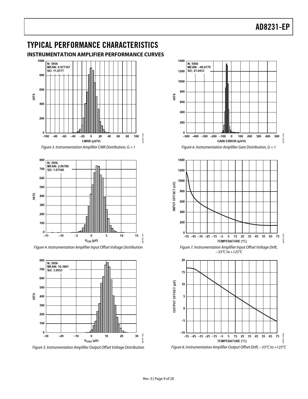 09 09707 Figure 4. Instrumentation Amplifier Input Offset Voltage Distribution Figure 7. Instrumentation Amplifier Input Offset Voltage Drift, −55°C to +125°C