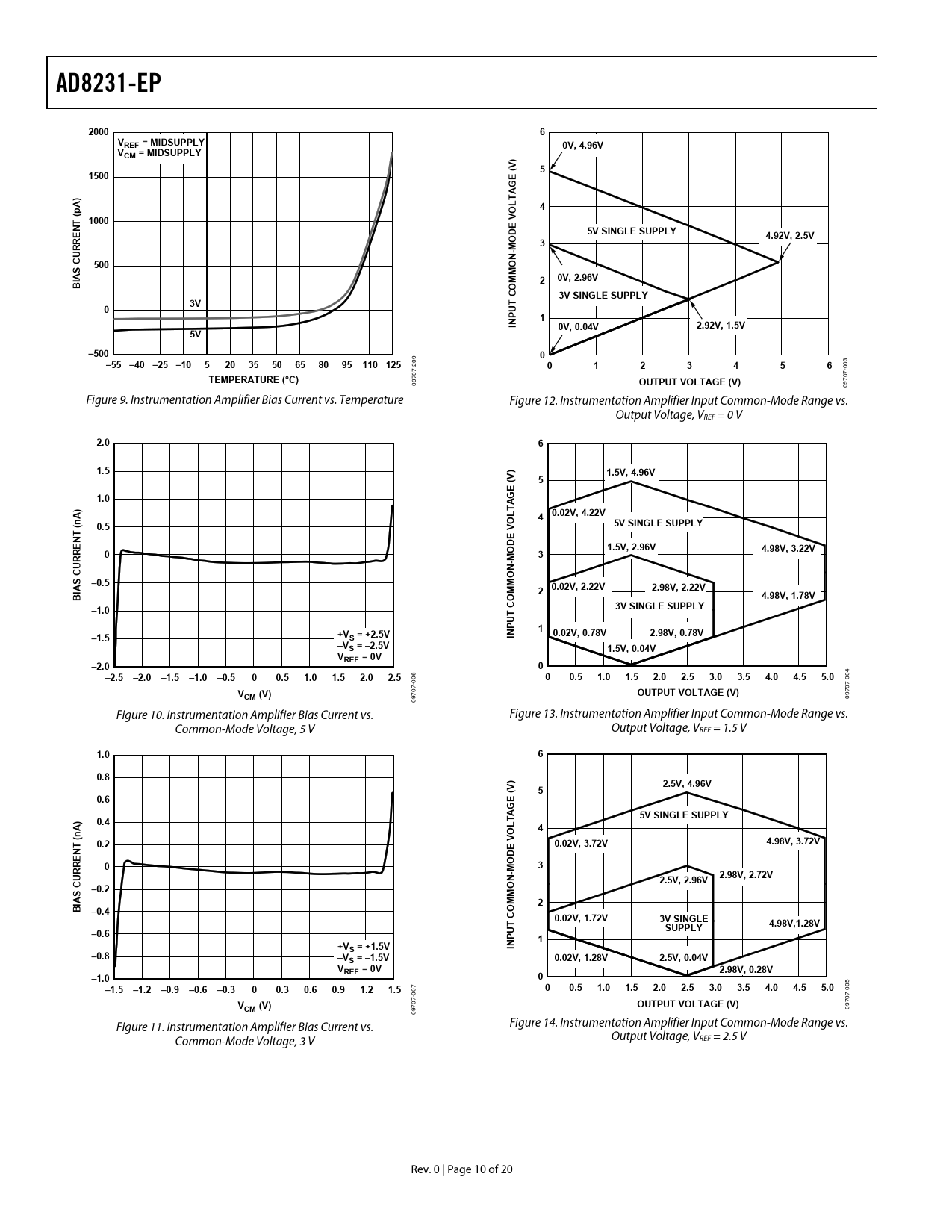 09 09 Figure 10. Instrumentation Amplifier Bias Current vs. Figure 13. Instrumentation Amplifier Input Common-Mode Range vs. Common-Mode Voltage, 5 V Output Voltage, VREF = 1.5 V