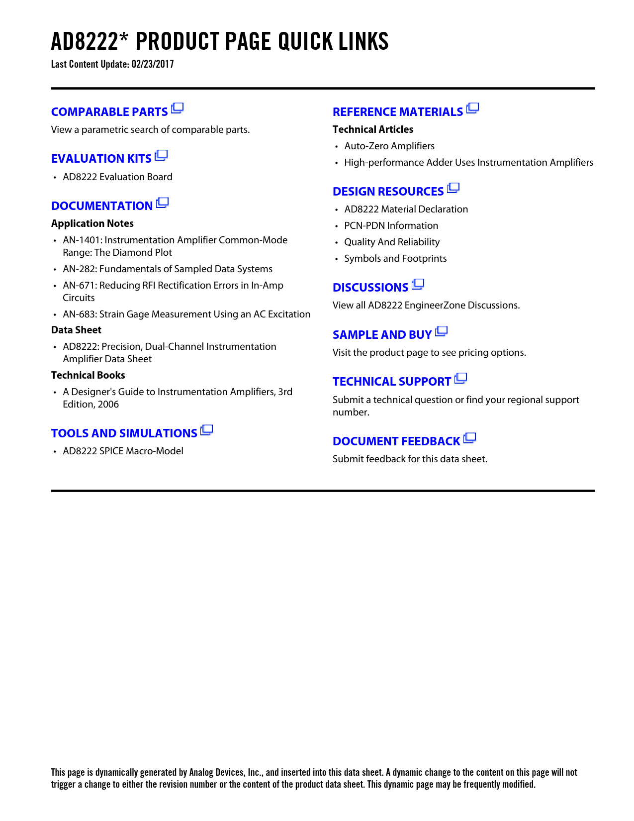 This page is dynamically generated by Analog Devices, Inc., and inserted into this data sheet. A dynamic change to the content on this page will not trigger a change to either the revision number or the content of the product data sheet. This dynamic page may be frequently modified.