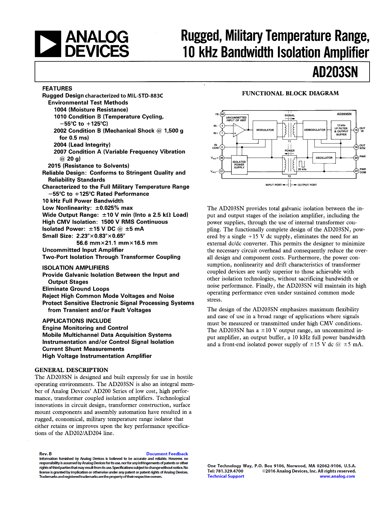 Rugged, Military Temperature Range, 1 0 kHz Bandwidth Isolation Amplifier