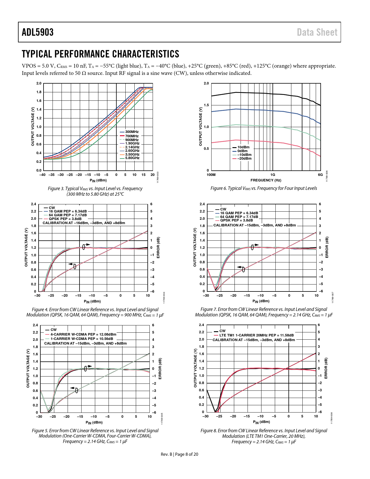 ADL5903. Data Sheet. TYPICAL PERFORMANCE CHARACTERISTICS. 2.0. 1.8. 1.6. 1.5. 1.4. E (V). G 1.2. O 1.0. T V. 300MHz. U 0.8. 700MHz. 900MHz. OU 0.6